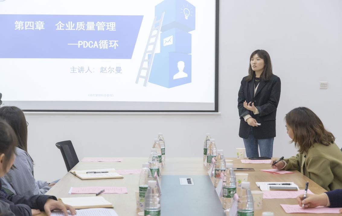 随后,在“聚焦人才培养 提升教学能力”青年教师示范课环节,商学院教师党支部纪花老师、入党积极分子赵尔曼老师分别为大家带来了《品牌延伸》和《PDCA循环管理》示范课。两位老师通过案例教学、视频教学、课堂讨论等方式,充分展现了商学院青年教师的授课风采;通过观摩课程思政教学示范,与会老师们对于进一步充实课程内容、提升课程内涵价值形成了较为深入的认识和理解。万象城awc官网登录入口刘宁教授和王娟教授对示范课进行了点评,并高度评价了商学院青年教师的教学能力和水平。随后,老师们围绕课程思政建设、翻转课堂建设、专业课程设置等方面进行了深入的探讨与交流。