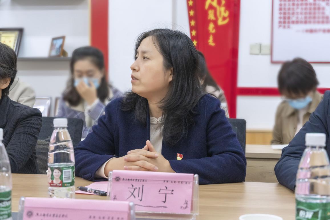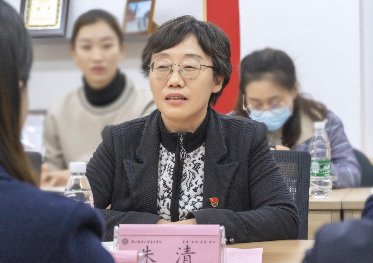 商学院党总支副书记沈冰冰做表态发言。她提出,在2021年这个不平凡的一年里,商学院始终坚持疫情防控不松懈、教学科研不停步、改革发展不放松,经受疫情大考的同时,各项事业都取得了长足的进步。商学院党总支全体党员同志要牢记立德树人根本任务,将双创教育贯穿于商学院人才培育全过程,让党史学习教育充分融入立德树人和铸魂育人各个环节,不断提升思想政治教育的工作实效。在新的发展时期,商学院党总支要努力把握机遇,培养德才兼备的高层次人才;深化改革,推动学院教育高质量发展;注重培养,打造一支高素质教师队伍。商学院将强化责任担当,推动本科生教育质量再上新台阶。