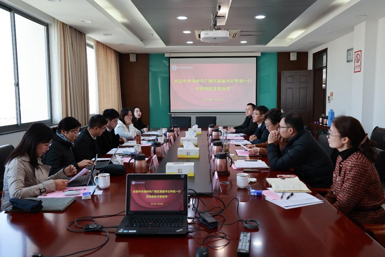 院长王承宽对李书记一行的来访表示欢迎,他简要介绍了学院历史、基础建设等学院整体情况。党委书记朱清从信息类、应用型、高水平等关键词,介绍了学院办学特色、优势专业、毕业生就业、创新创业教育等人才培养情况。李书记对学院的热情接待表示感谢,对学院的人才培养质量给予充分肯定。他表示广陵新城着力打造软件服务产业,希望“政府+高校+企业”三方发挥各自优势,加强交流,拓宽多领域合作,助推地方、学校与企业建设发展,实现三方合作共赢。