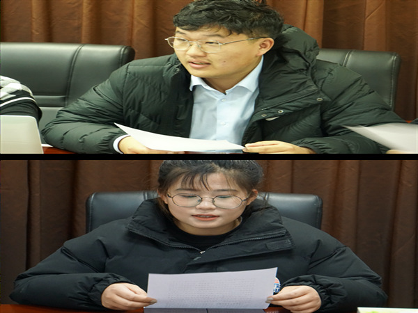 支部委员、学生会主席孙浩楠结合自身及工作谈了三点学习体会。一是要立足平凡岗位,用踏实奋斗书写青春荣光。二是要练就过硬本领,以青春之我投身强国伟业。三是要汇聚磅礴力量,把最美青春献给祖国人民。