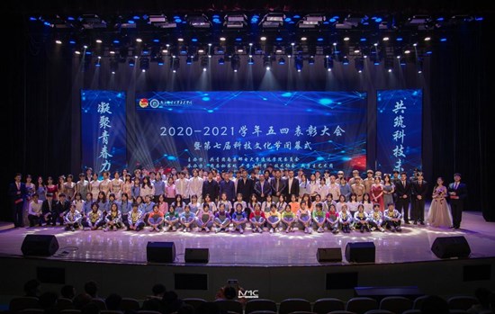4月26日晚,万象城官网2020/2021学年五四表彰大会暨第七届科技文化节闭幕仪式在大学生活动中心礼堂顺利举行。院长王承宽、党委书记汪业周、常务副院长赵洪牛、副院长倪可、副院长刘允、党委副书记兼副院长王楷出席本次活动。相关职能部门负责人、全体辅导员老师以及学生代表约1200人参与了本次大会。