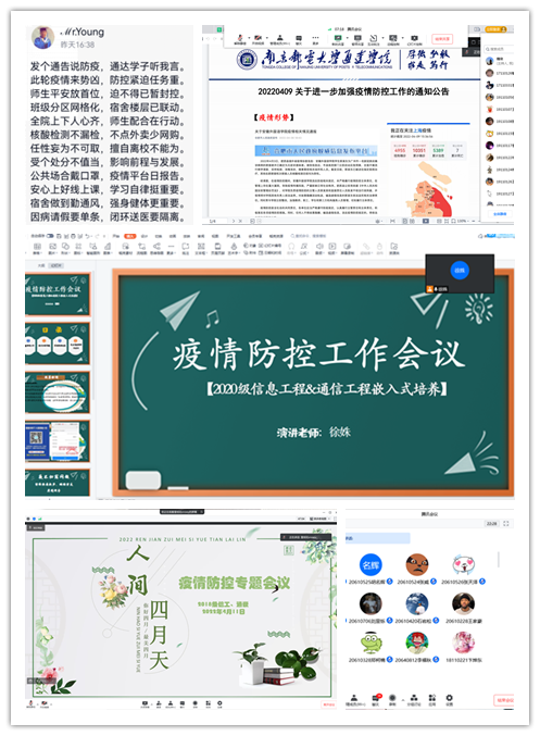 当前,全国疫情形势严峻复杂,高校疫情防控任务艰巨。通信工程学院教职工主动作为,闻令而动,听令而行,展现了良好的抗疫氛围和积极向上的精神状态,谱写了一个个暖心的抗疫故事。