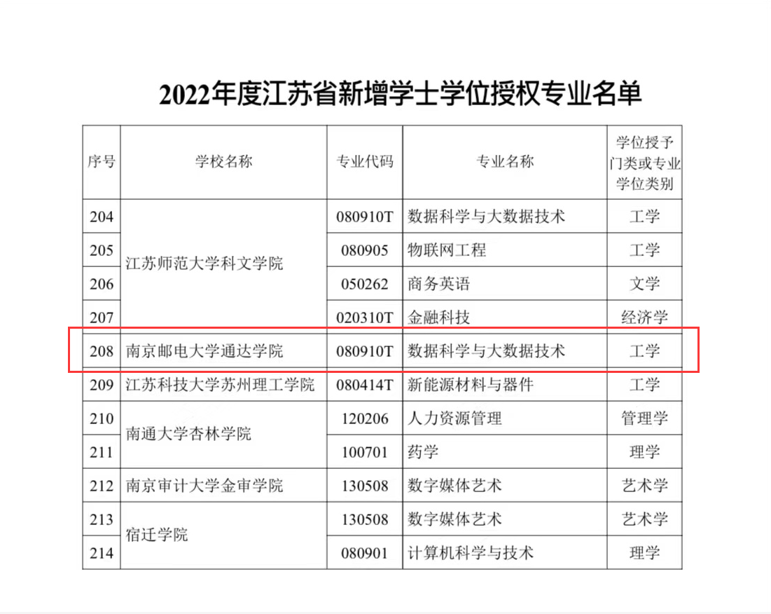 近日,江苏省学位委员会下发了《省学位委员会 省教育厅关于公布2022年度新增学士学位授权专业名单的通知》(苏学位字函〔2022〕2号),万象城官网数据科学与大数据技术专业通过学士学位授权评审,顺利获得学士学位授予权。