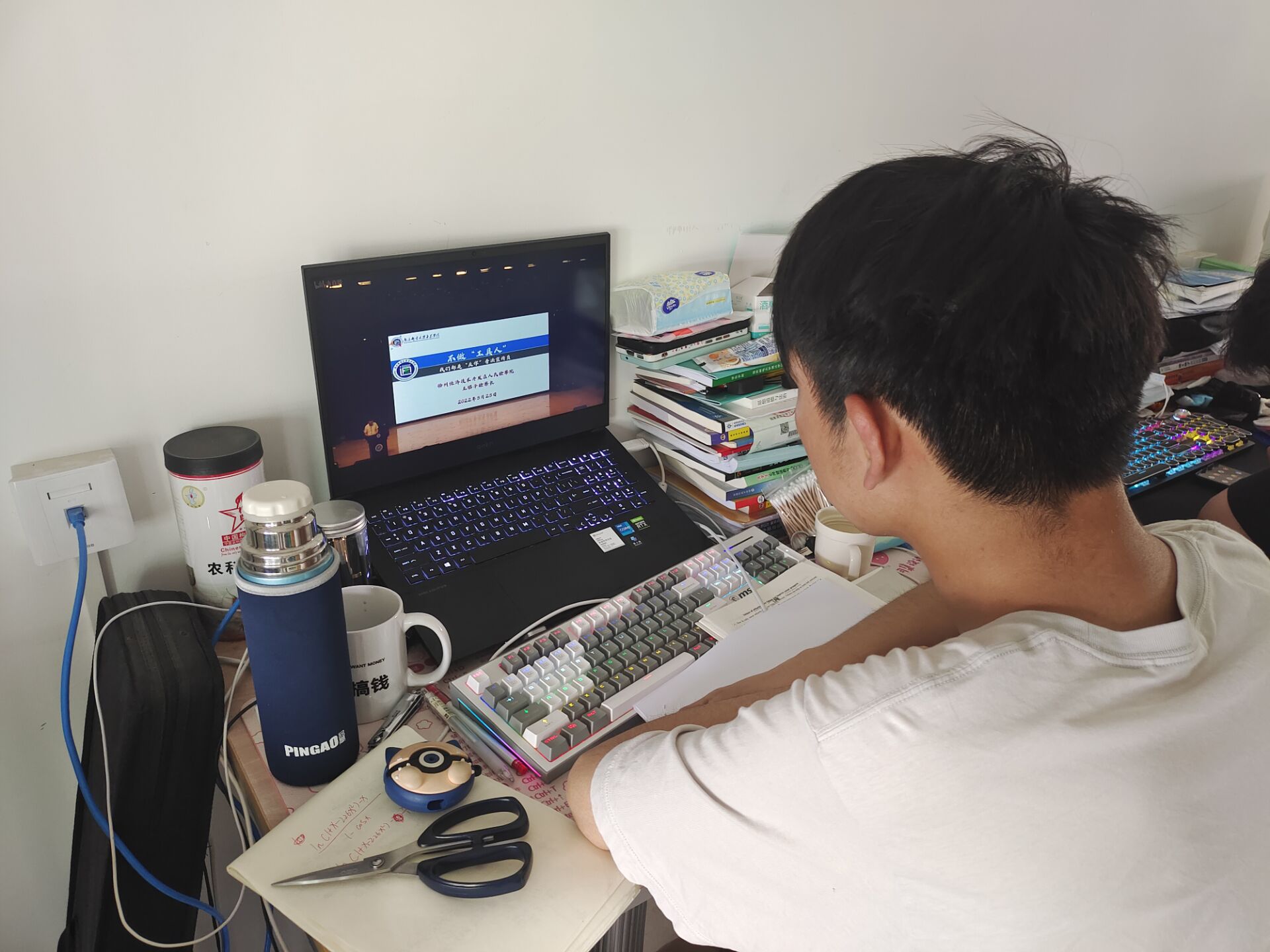 学生在宿舍通过团委哔哩哔哩官方账号看直播