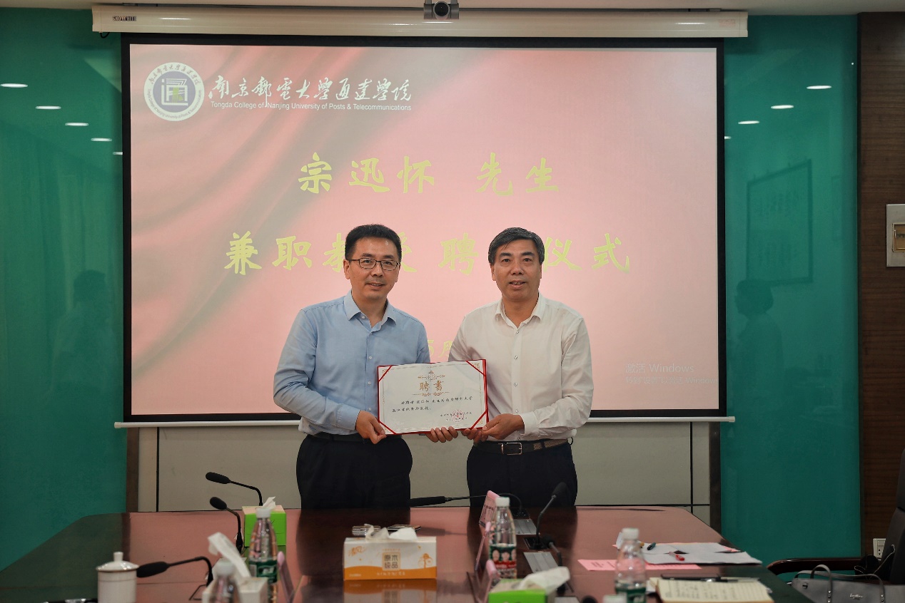 5月30日下午,万象城官网举行万象城awc官网登录入口1992级校友、中国移动扬州分公司党委书记、总经理宗迅怀先生兼职教授聘任仪式。出席聘任仪式的有中国移动扬州邗江分公司党支部书记、总经理殷峥嵘、中国移动扬州分公司市场部副经理周健、中国移动扬州邗江分公司校园部主任周鹏,学院院长王国平出席聘任仪式并颁发聘任证书,副院长刘允及相关部门负责人参加聘任仪式。