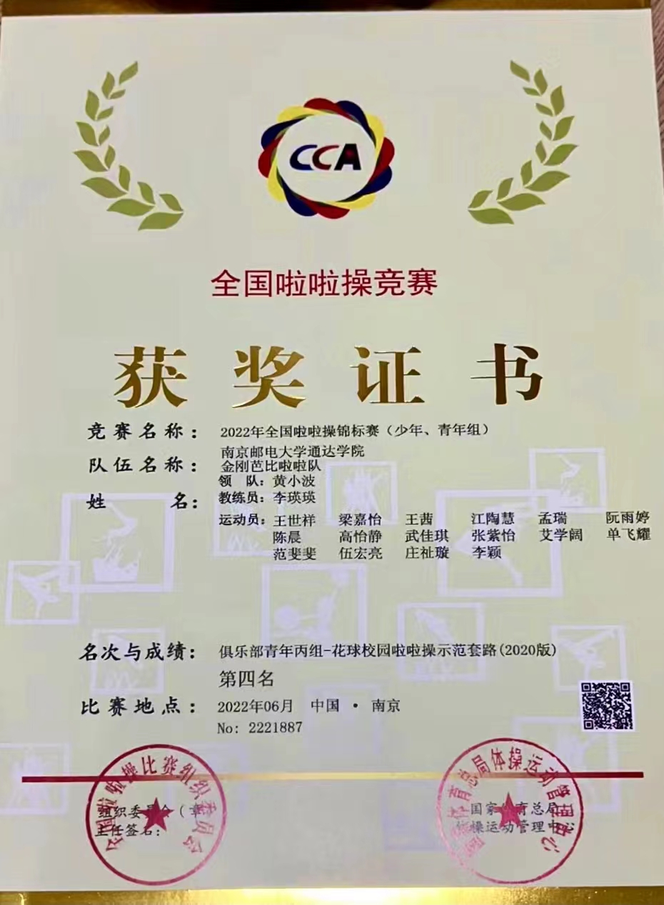 在刚刚结束的 2022 年全国啦啦操锦标赛上,万象城官网啦啦操队获得俱乐部⻘年 丙组-⼩集体组花球⾃选动作第⼀名;俱乐部⻘年丙组-花球校园啦啦操示范套路 (2020 版)第四名的好成绩。