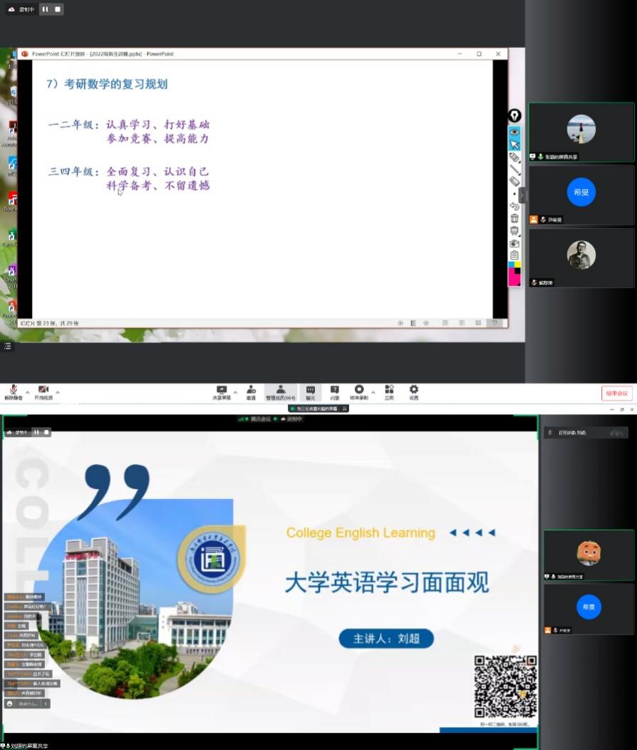 本次暑期学业规划讲座为新生数学、英语等基础课程学习提供了有效建议,并帮助新生初窥大学学习生活,为2022级新生大学四年学业进步与发展打下了坚实基础。