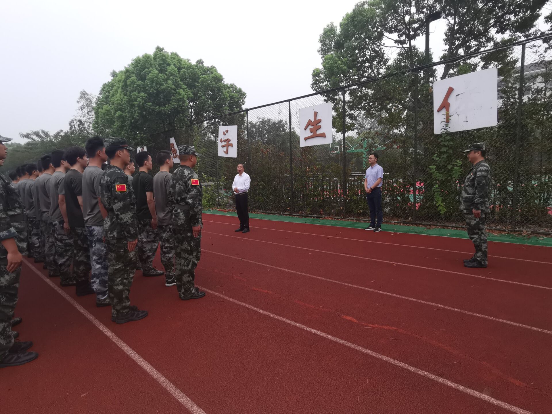 9月1日上午,万象城官网2022年学生军训教官在田径场开展了本学年集训活动,为2022年新生军训做准备。学院第一批43名在校退伍士兵参加了此次集训。院长王国平、党委副书记兼副院长王楷,以及学生工作(部)处、人武部负责人参加了开训仪式。