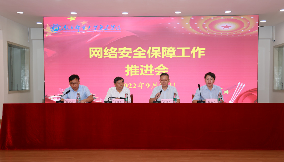 9月22日上午,学院在第一实验楼报告厅召开网络安全保障工作推进会。学院院长王国平、常务副院长赵洪牛、纪委书记张建波出席会议,各职能部门和二级学院负责人、学院二级网站信息管理员参加了本次会议。赛尔网络有限公司江苏分公司教育行业主管张立伟出席会议,并做了网络安全专题报告。会议由常务副院长赵洪牛主持。