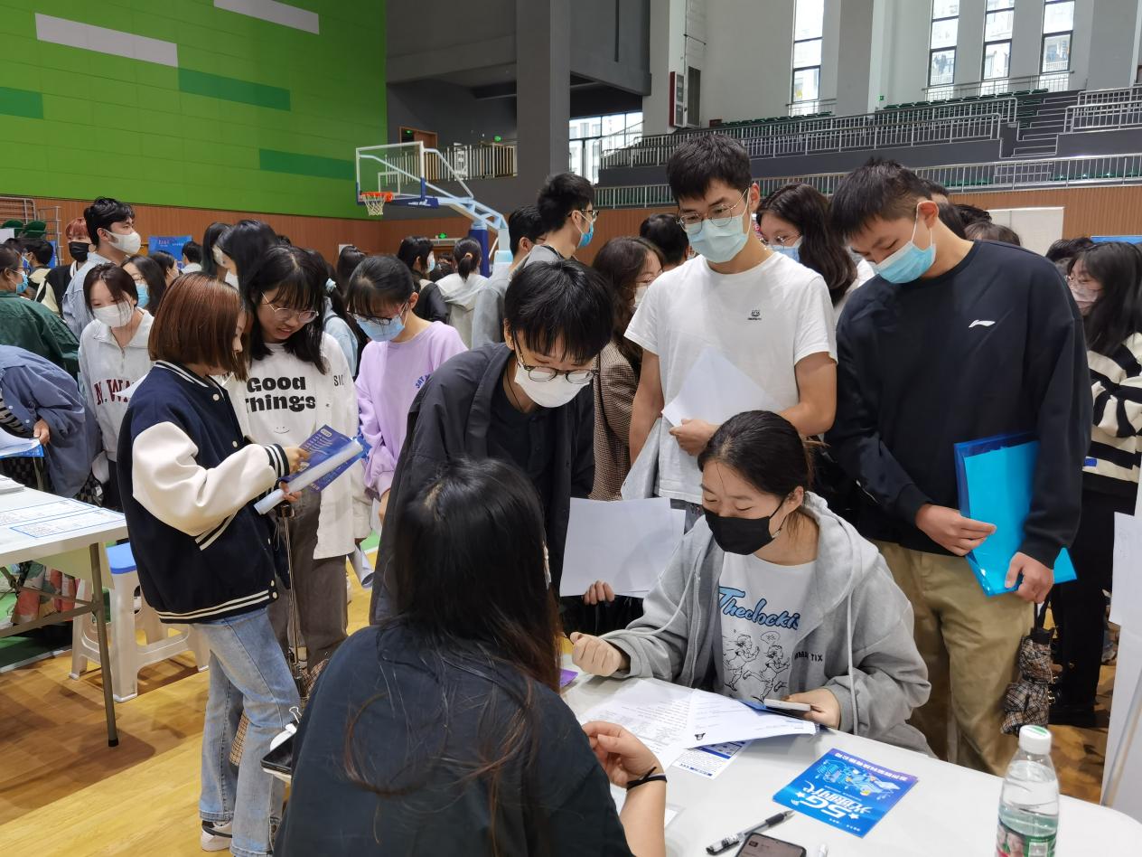 招聘会尚未开始,前来求职的同学便排起了长队,经统计,共有1200余名学生到场参加。九月份处于秋招的黄金期,经过前期的组织动员,大四同学都对本次招聘会期待已久,摩拳擦掌,对简历、面试等都做了精心准备。活动现场,人流涌动,企业与学生积极交流互动,有的企业展位前求职学生排成了长队,上海华振物流招聘负责人表示,“本次招聘会他们收到了一百多份简历,通达的学生都很积极,本次招聘会非常值得”。部分企业下午直接在学院进行笔试面试。现场学生也表示,“疫情背景下毕业生求职增加了难度,学校通过举办招聘活动,为毕业生搭建了与企业沟通的平台,为学生求职提供了便利”。