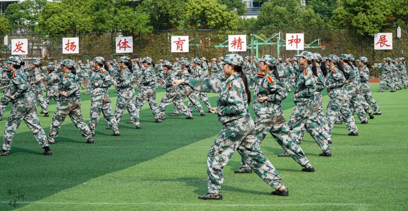 2500余名新生列着整齐的队伍,在教官的带领下,以嘹亮的口号、严密的纪律、过硬的素质接受主席台领导和老师的检阅。军乐声声,战旗猎猎,4个营32个军训方队依次经过主席台前,步伐坚定、队形整齐、气宇轩昂,展现了新时代中国青年“请党放心、强国有我”的精神风貌。1000余名受训学生分三个方阵展示了海军旗语、女子擒敌拳、防爆处突等表演。整齐划一的动作,刚劲有力的拳脚,娴熟连贯的队形变换,赢得了在场师生的阵阵掌声。