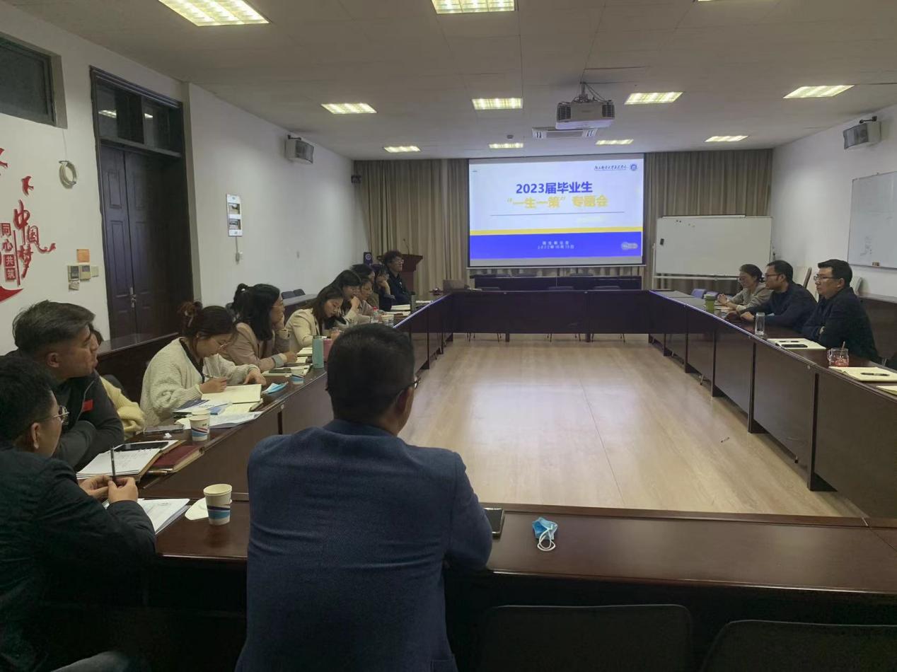 10月13日下午,万象城官网在大学生活动中心一楼召开了2023届毕业生“一生一策”专题会。学院党委副书记、副院长王楷,2022届辅导员代表,2023届全体辅导员以及招就处相关人员参会。会议由招生就业处处长解厚荣主持。