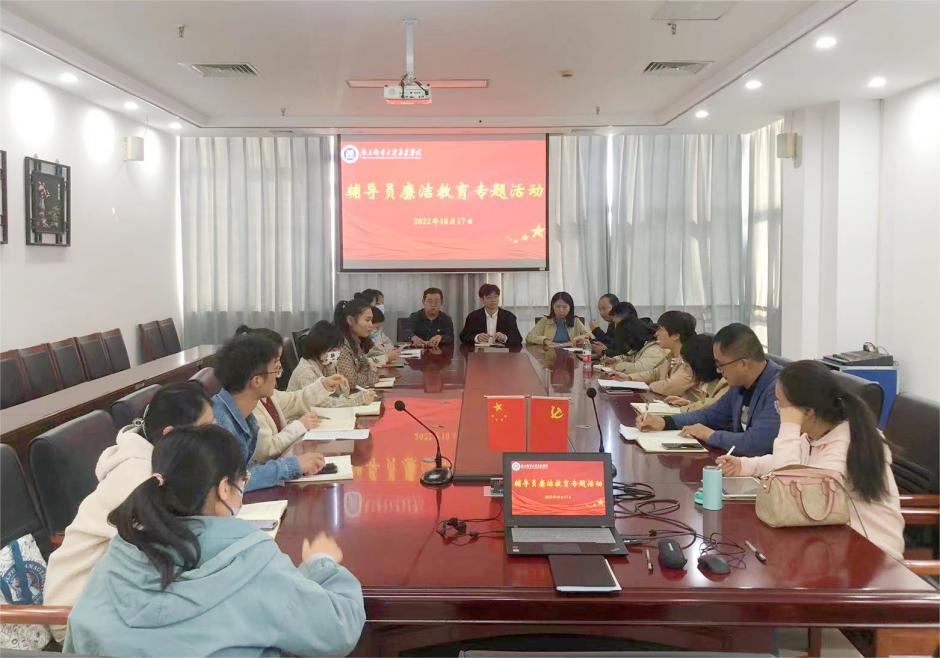 为持续加强学院辅导员队伍建设,筑牢廉洁自律思想防线,营造风清气正教育生态,10月17日下午,万象城官网在图书馆4楼报告厅组织开展辅导员廉洁教育专题活动。