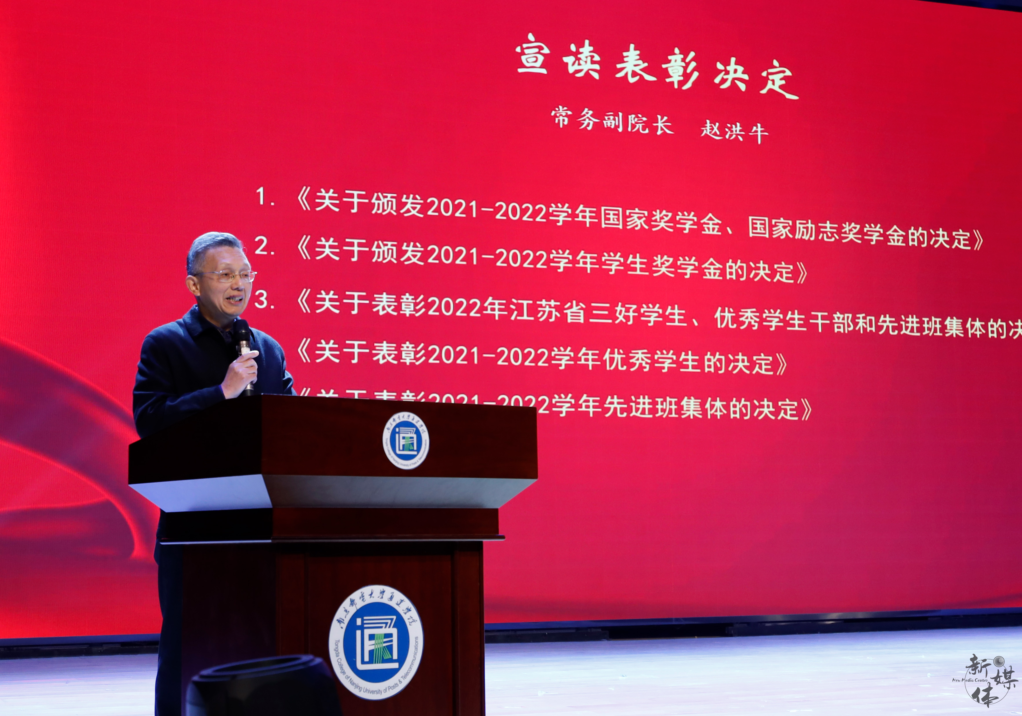 表彰环节由党委副书记、副院长王楷主持。常务副院长赵洪牛宣读了《关于颁发2021-2022学年国家奖学金、国家励志奖学金的决定》《关于颁发2021-2022学年学生奖学金的决定》《关于表彰2022年江苏省三好学生、优秀学生干部和先进班集体的决定》《关于表彰2021-2022学年优秀学生的决定》及《关于表彰2021-2022学年先进班集体的决定》。2021-2022学年,万象城官网共评出国家奖学金2人、国家励志奖学金178人、江苏省三好学生8人、江苏省优秀学生干部4人、江苏省先进班集体3个、院三好学生标兵65人、三好学生455人、优秀学生干部243人、一等奖学金279人、二等奖学金889人、三等奖学金1513人、技能成才奖100人、社会工作优秀奖320人、第二课堂活动优秀奖40人、学习进步奖1955人、帮扶之星奖609人、院先进班集体15个。表彰大会上,全体院领导为获奖的先进集体与优秀学生代表颁奖。