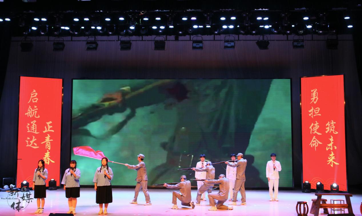 新媒体中心制作的视频《青春邮你》把观众带到活动下篇“向未来”;器乐表演《光的方向》让我们在美妙的古典音乐中看到中国共产党给沉睡的大地带来曙光,点燃了华夏复兴的革命之火;情景剧《时间都去哪儿了》警醒我们盛年不重来,一日难再晨,及时当勉励,岁月不待人;舞蹈《傣》使晚会的氛围冲上新的高潮,欢快的旋律洋溢着青春的活力;朗诵《记忆犹新》带领观众回忆了青年一代风雨兼程,走过的那条极不平凡的道路。晚会在2022级新生辅导员的热情寄语声中落下帷幕。