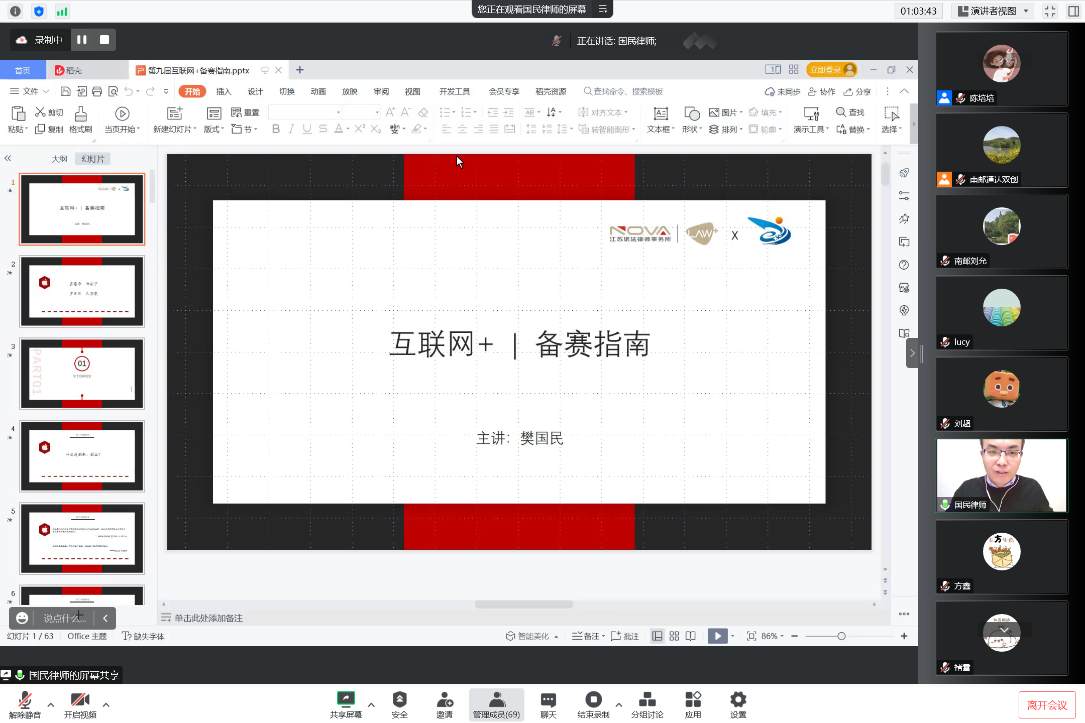 江苏诺法律师事务所主任樊国民分析了新时代大众创业和万众创新的形势,梳理了高校创新创业教育现状,详细介绍了“互联网+”大赛的规则与赛道,深入讲解了参与项目的挖掘、打磨与落地的方法与技巧,鼓励教师要以敢闯的素质、会创的本领和家国的情怀推动人才培养新范式的深刻变革。