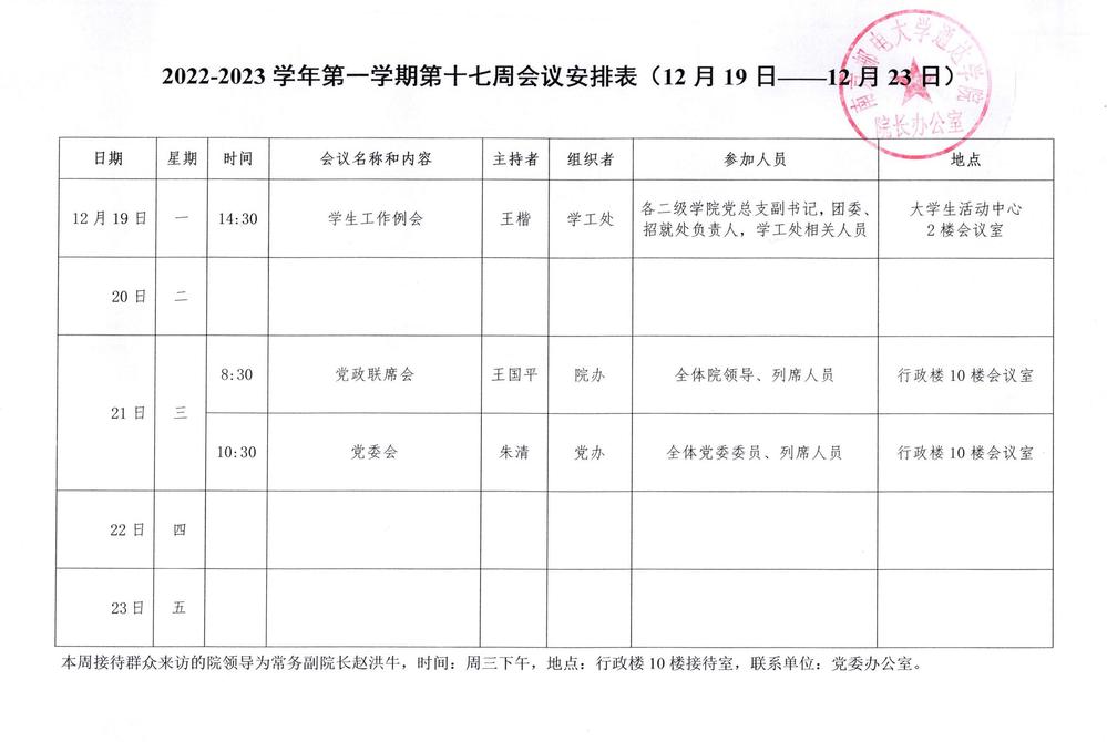 2022-2023学年第一学期第十七周会议安排表