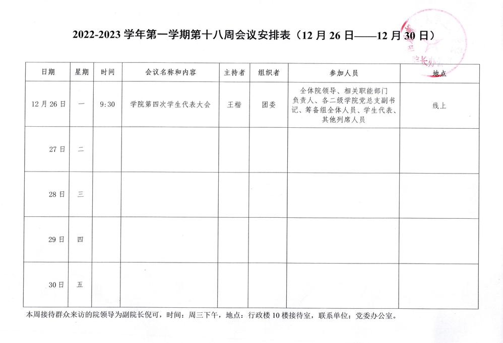 2022-2023学年第一学期第十八周会议安排表