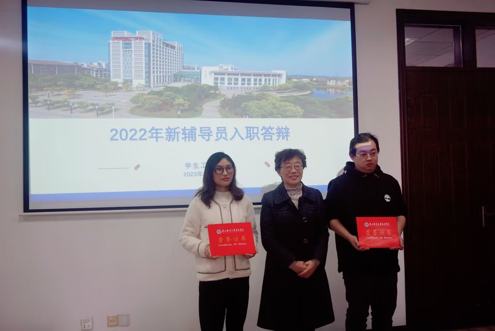 最终通信工程学院辅导员严棉、电子工程学院辅导员朱峣被评为2022年度优秀新入职辅导员。此次入职答辩活动为2022年入职的辅导员们提供了学习交流的平台,以赛促学,以评促建,有力推动万象城官网辅导员队伍向职业化、专业化、专家化发展。