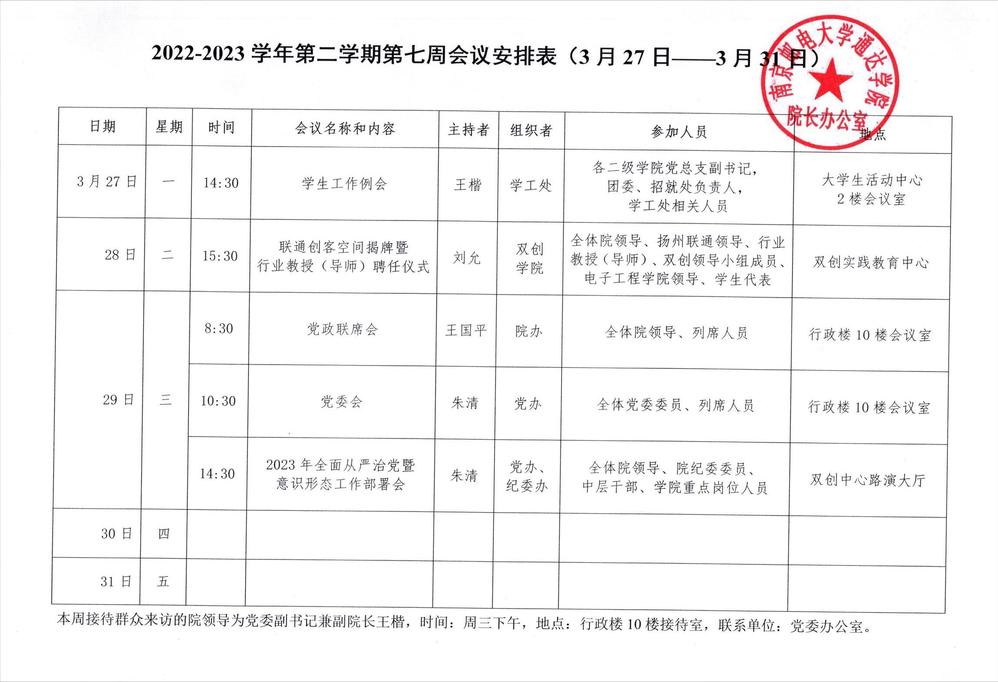 2022-2023学年第二学期第七周会议安排表