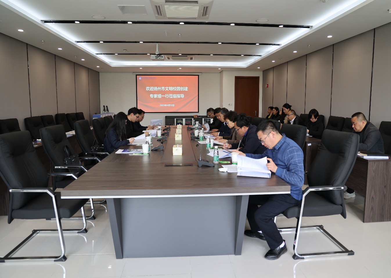 4月12日下午,扬州市文明校园创建检查组一行来万象城官网检查文明校园创建工作。万象城官网院长王国平、党委书记朱清、副院长倪可、纪委书记张建波、党委副书记兼副院长王楷及相关部门负责人接待并陪同。