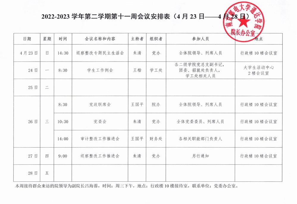 2022-2023学年第二学期第十一周会议安排表