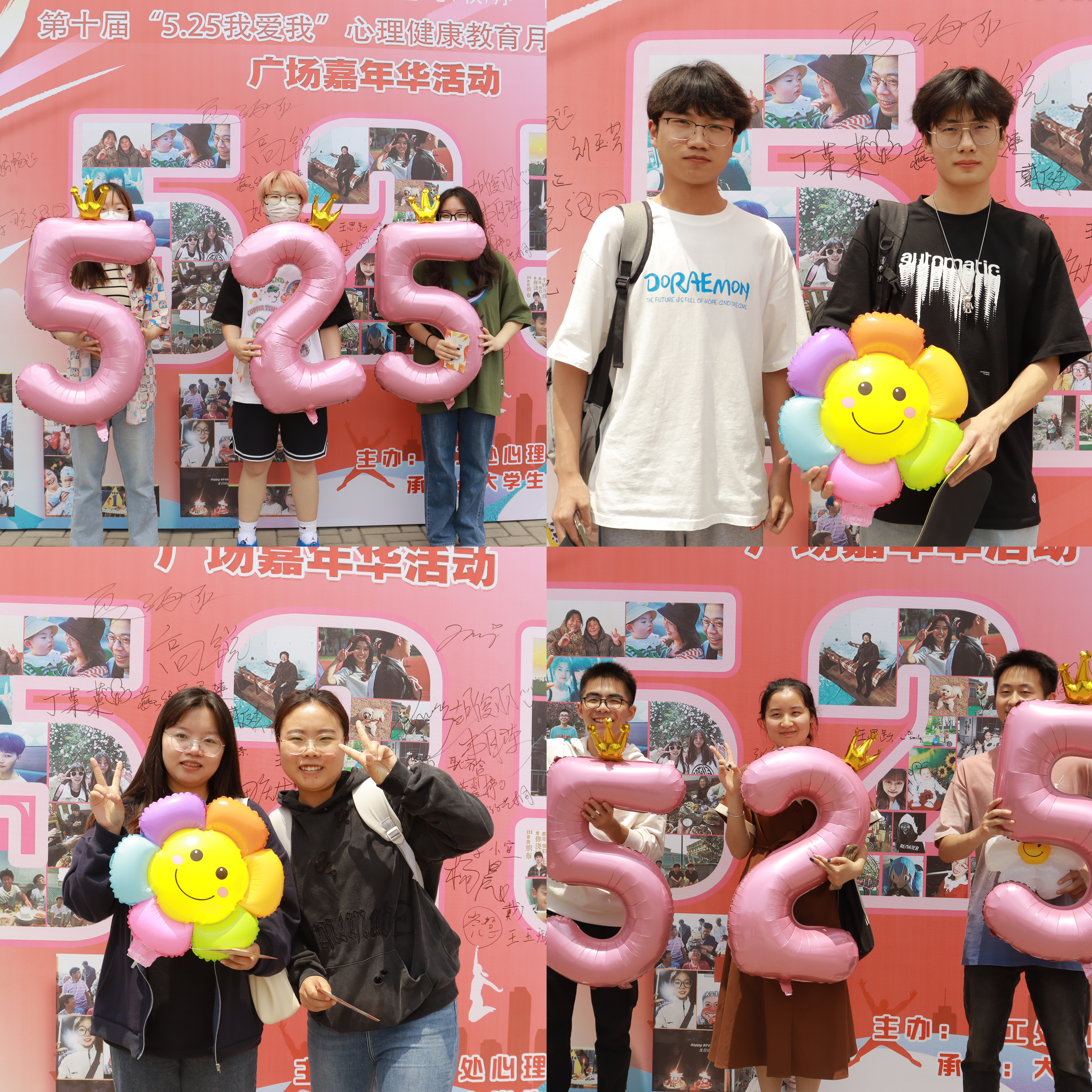 5月25日是学生心理健康日,万象城官网学工处心理健康教育中心组织开展系列主题活动引导学生珍爱自己、关心他人、关爱社会。本次广场嘉年华活动是“重塑心秩序,青春再启航”第十届“5.25我爱我”心理健康教育月系列活动之一,旨在教育引导大学生积极构建健康和谐的身心秩序,以阳光心态、强健体魄,开启青春筑梦新征程。