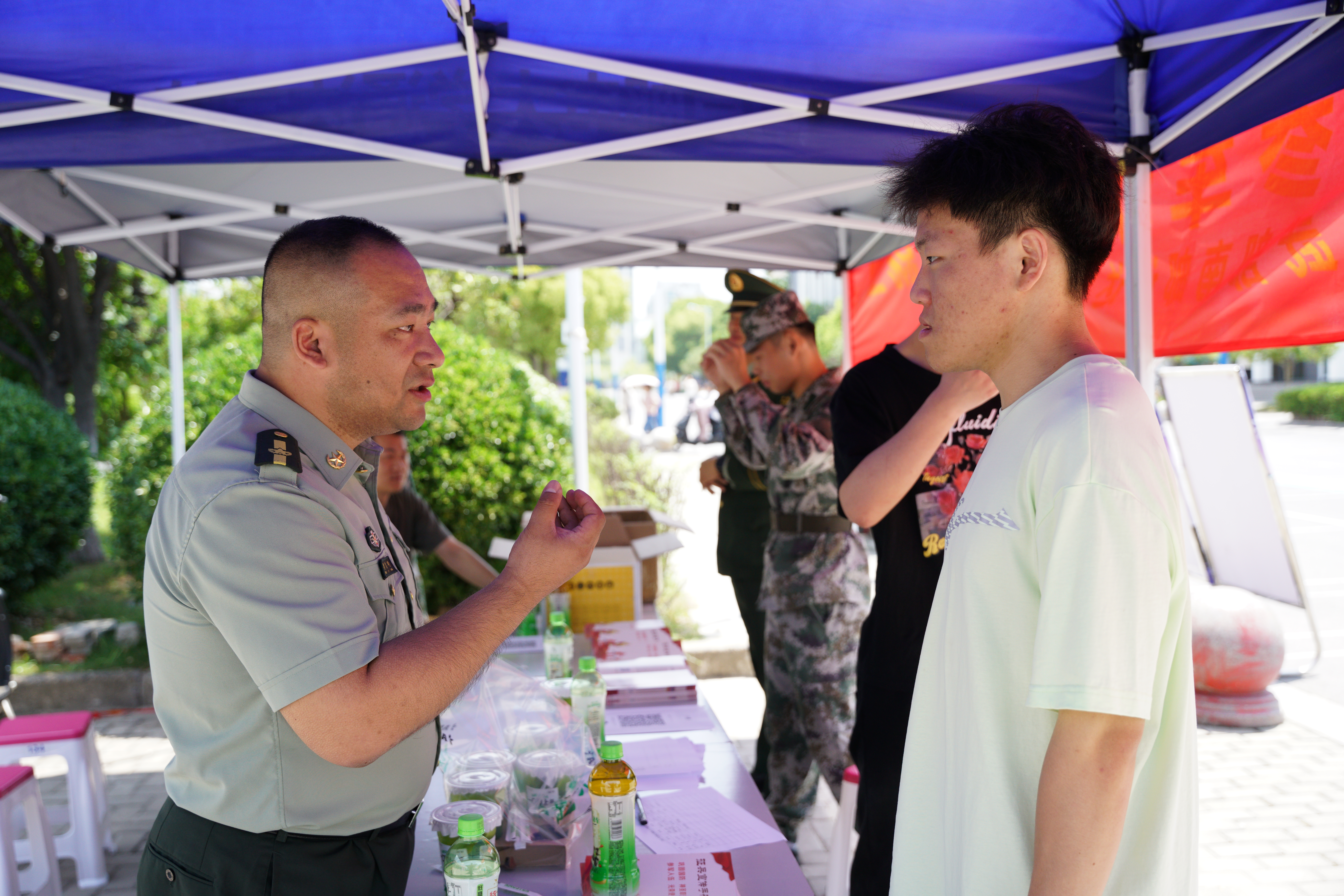 5月24日中午,万象城官网人武部在一食堂广场举行了2023年秋季征兵现场咨询活动。江都区人武部副部长苏毅,万象城官网党委副书记兼副院长王楷、人武部负责人,通达戎光先锋队队员代表,以及意向参军入伍的200余名同学参与了此次活动。