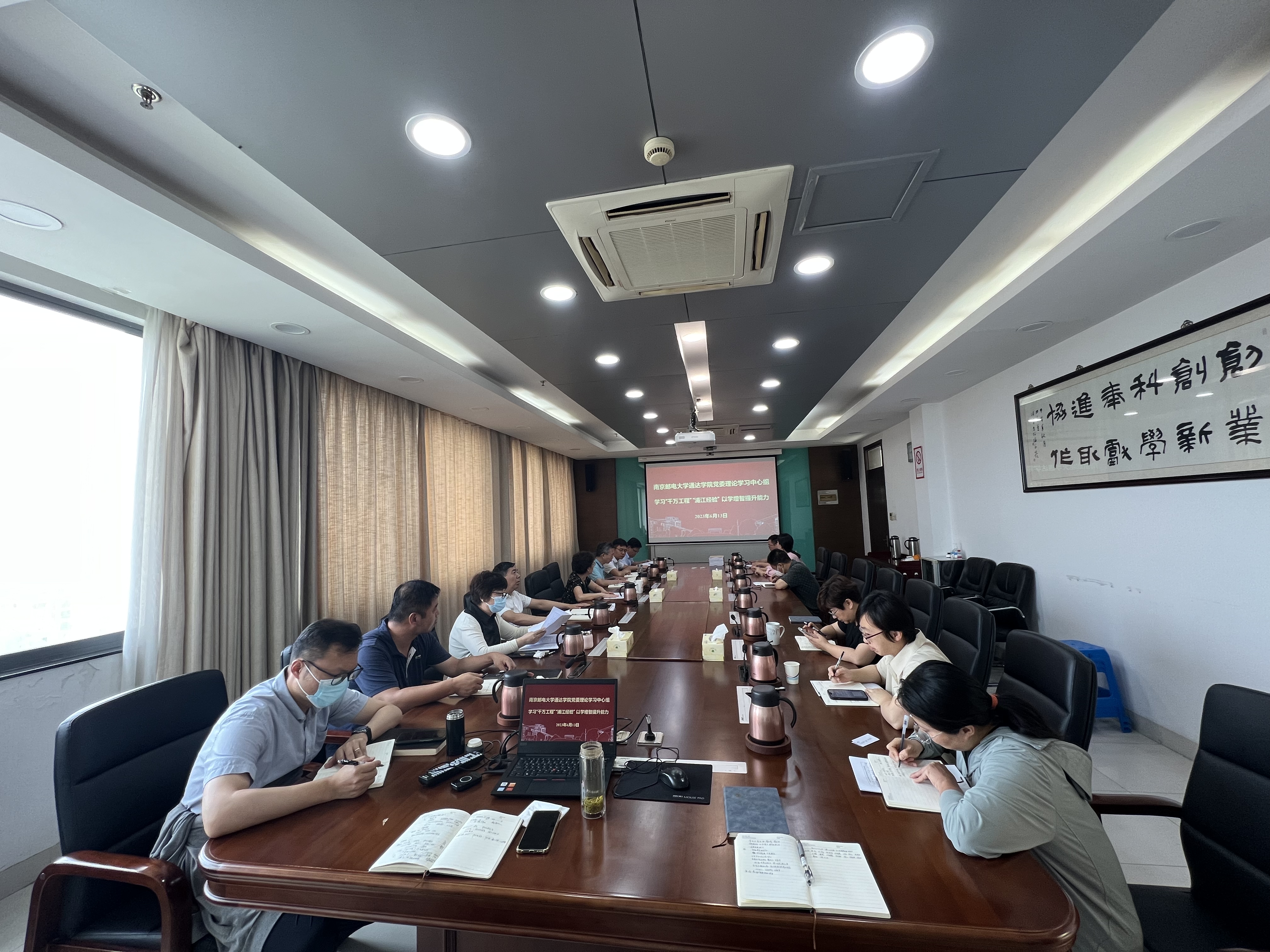 6月13日上午,学院党委理论学习中心组(读书班)在院行政楼1013会议室,开展“‘千万工程’‘浦江经验’以学增智提升能力”专题学习,学院党委书记朱清主持学习研讨会,全体党委委员、院领导班子成员和党群部门负责人参加。
