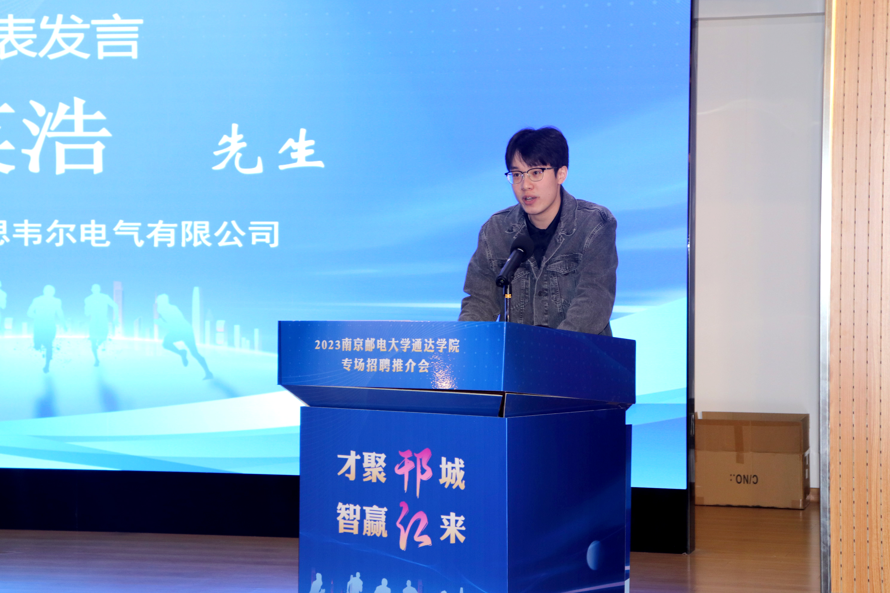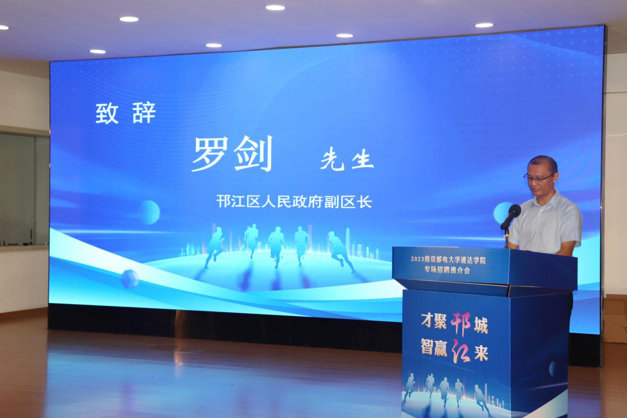 在推介会上,邗江区副区长罗剑在致辞中表示,“要充分挖掘本地高校项目和人才资源,建立长效合作机制,促进产学研深度融合,赋能地方经济高质量发展。”万象城官网院长王国平在致辞中感谢邗江区政府对万象城官网毕业生就业工作的大力支持。同时介绍了通达学院的发展历程、目标定位以及专业情况,他希望各位同学能积极选择留扬留邗就业创业,能在扬州、邗江这块“好地方”发展成长,把“好地方”建设得好上加好、越来越好。邗江区委组织部副部长徐宽兴介绍了邗江整体产业情况及人才引进政策。丰尚智能公司招聘主管刘林生为学生介绍了企业选才聘才的要求,面试经验以及简历制作重点。万象城官网2023届优秀毕业生孙英浩给学弟学妹分享了在扬工作感受和体会。最后罗区长和胡局长为万象城官网8位同学颁发了“邗江区就业创业政策宣传大使”聘书。