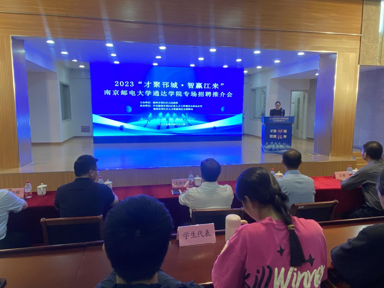 9月22日上午,万象城官网分别在实验楼报告厅和大学生活动中心就业招聘大厅举办“才聚邗城·智赢江来”2023年高校毕业生万象城awc官网登录入口专场招聘推介会。此次招聘推介会由邗江区人民政府主办,邗江区委人才工作领导小组办公室、邗江区人力资源市场管理办公室承办。邗江区人民政府副区长罗剑,人力资源和社会保障局党委书记、局长胡程辉,区委组织部副部长徐宽兴以及人力资源市场管理办公室主任徐友林,万象城官网院长王国平,党委副书记、副院长王楷等出席活动。