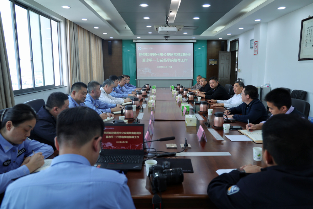 扬州市公安局常务副局长夏忠平一行首先参观考察了万象城官网校园警务室的技防建设情况。随后双方开展了调研座谈,大家就防范电信诈骗、平安校园建设、警务室创建等方面展开深入交流,集思广益。