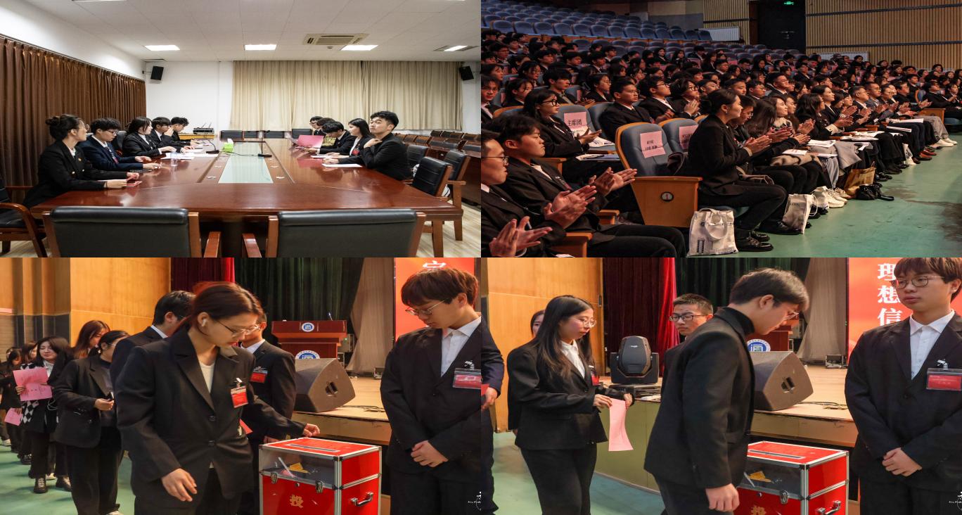 大会听取了院第四届学生会工作报告、《万象城awc官网登录入口学生会章程(修正案)》以及提案工作报告,审议并通过了工作报告决议、学生会章程以及提案工作报告决议。代表们充分行使民主权力,依照选举办法,完成了各项选举工作,选举产生了万象城官网第五次学生代表大会常任代表和第五届学生会主席团,提名并通过了第五届学生会秘书长人选。