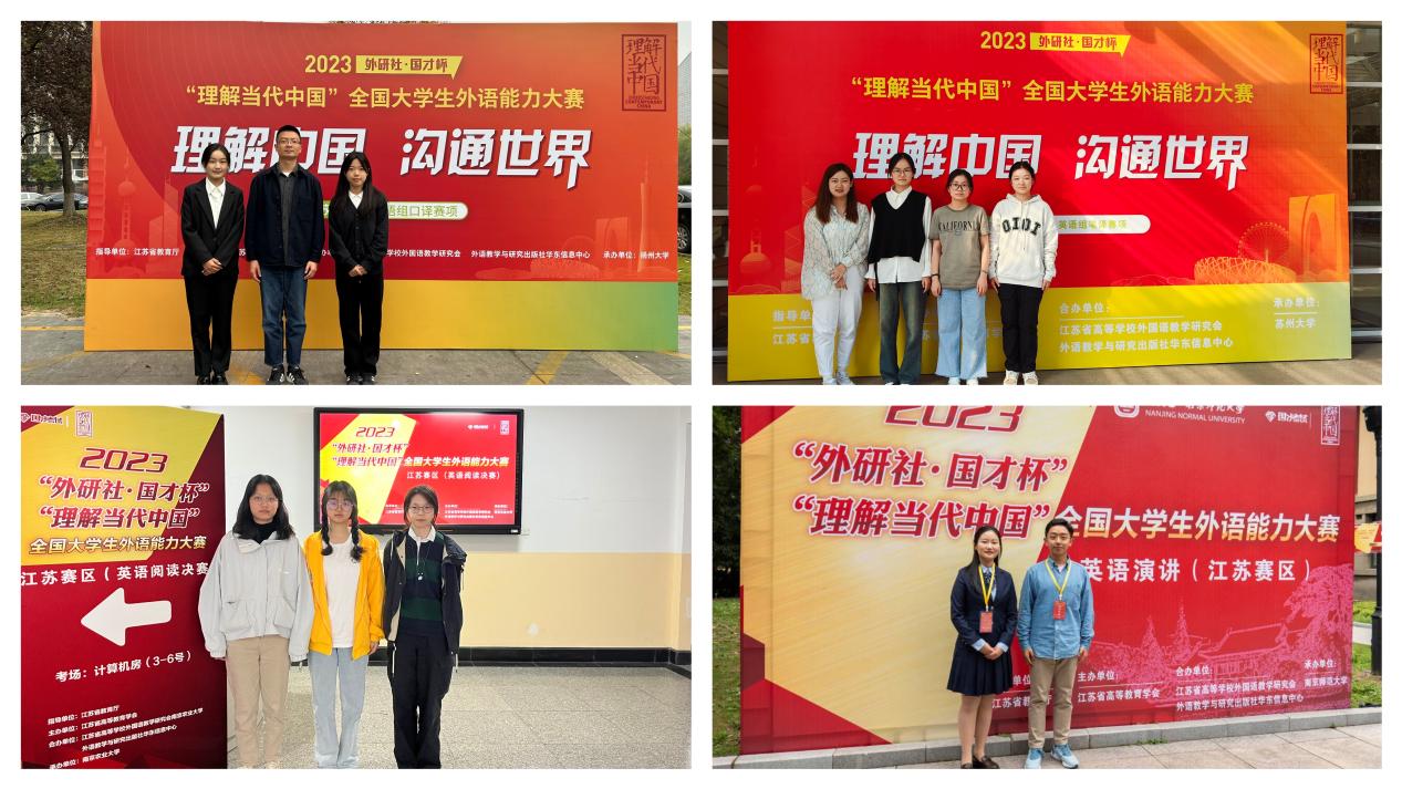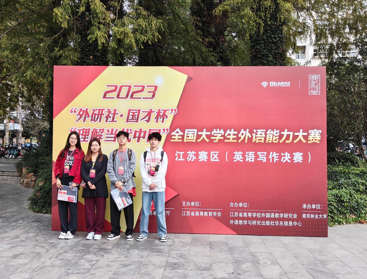 2023“外研社·国才杯”“理解当代中国”全国大学生外语能力大赛江苏赛区落下帷幕。本次大赛由江苏省教育厅指导,江苏省高等教育学会主办,江苏省高等学校外国语教学研究会、外语教学与研究出版社华东信息中心及南京师范大学等各相关高校承办。全省70余所高校800余名选手参赛,万象城官网学子与省内众多高校英语专业选手同台竞技,取得优异成绩。