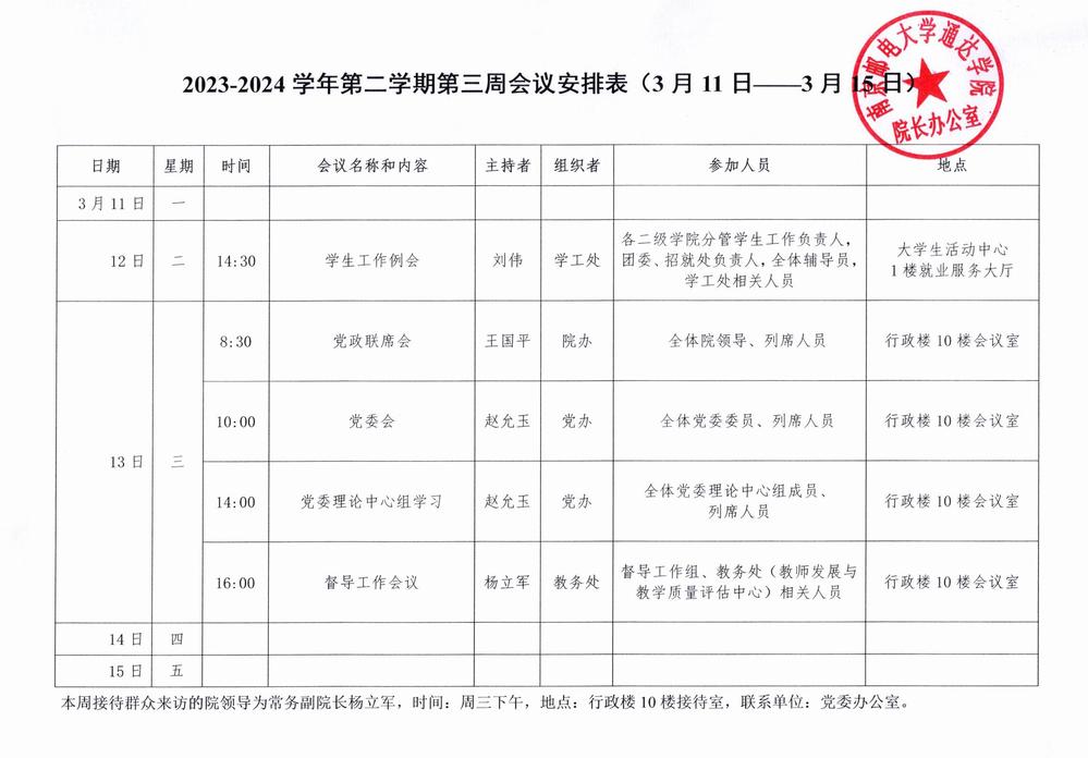 2023-2024学年第二学期第三周会议安排表
