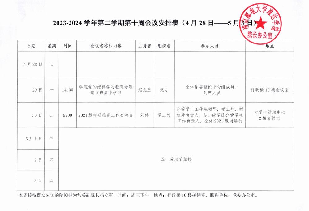 2023-2024学年第二学期第十周会议安排表