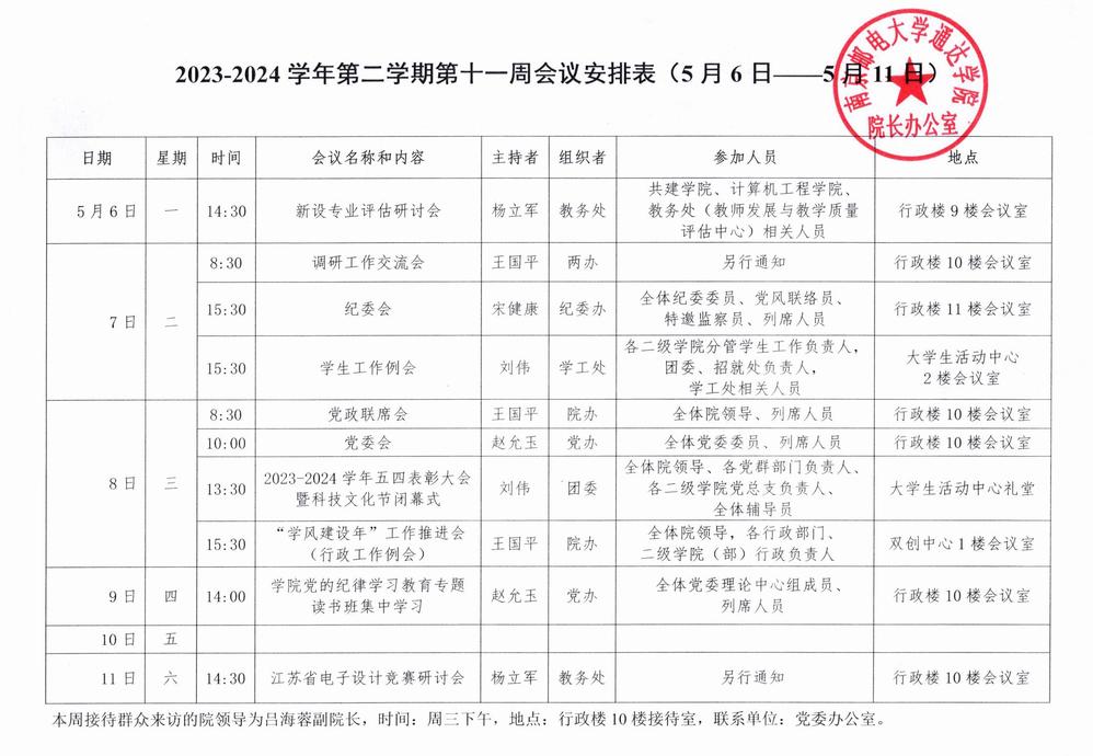 2023-2024学年第二学期第十一周会议安排表