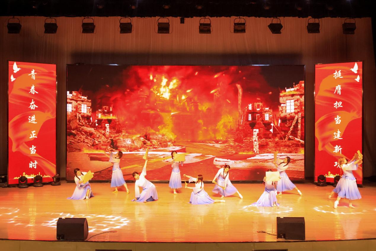 在文艺汇演环节,合唱《致吾辈》用歌声传递正能量,“吾辈当自强,吾辈莫敢忘”,歌曲《无名的人》将普通人奋斗的心酸苦辣演绎的淋漓尽致,优秀共青团干部代表陈振海和“挑战杯”获奖代表徐佳阳依次上台发言,向全体师生彰显榜样力量,绽放青春风采。