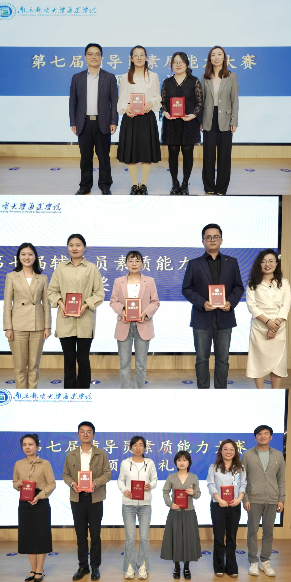 经过激烈的角逐,电气工程学院辅导员尹希旻、通信工程学院张梦雪获得一等奖;商学院辅导员陈静、王建华、电子工程学院辅导员杜阳获得二等奖;电气工程学院辅导员刘阳、琚琪琪、通信工程学院辅导员沙飞、张俐、计算机工程学院辅导员靳薇弘获得三等奖。