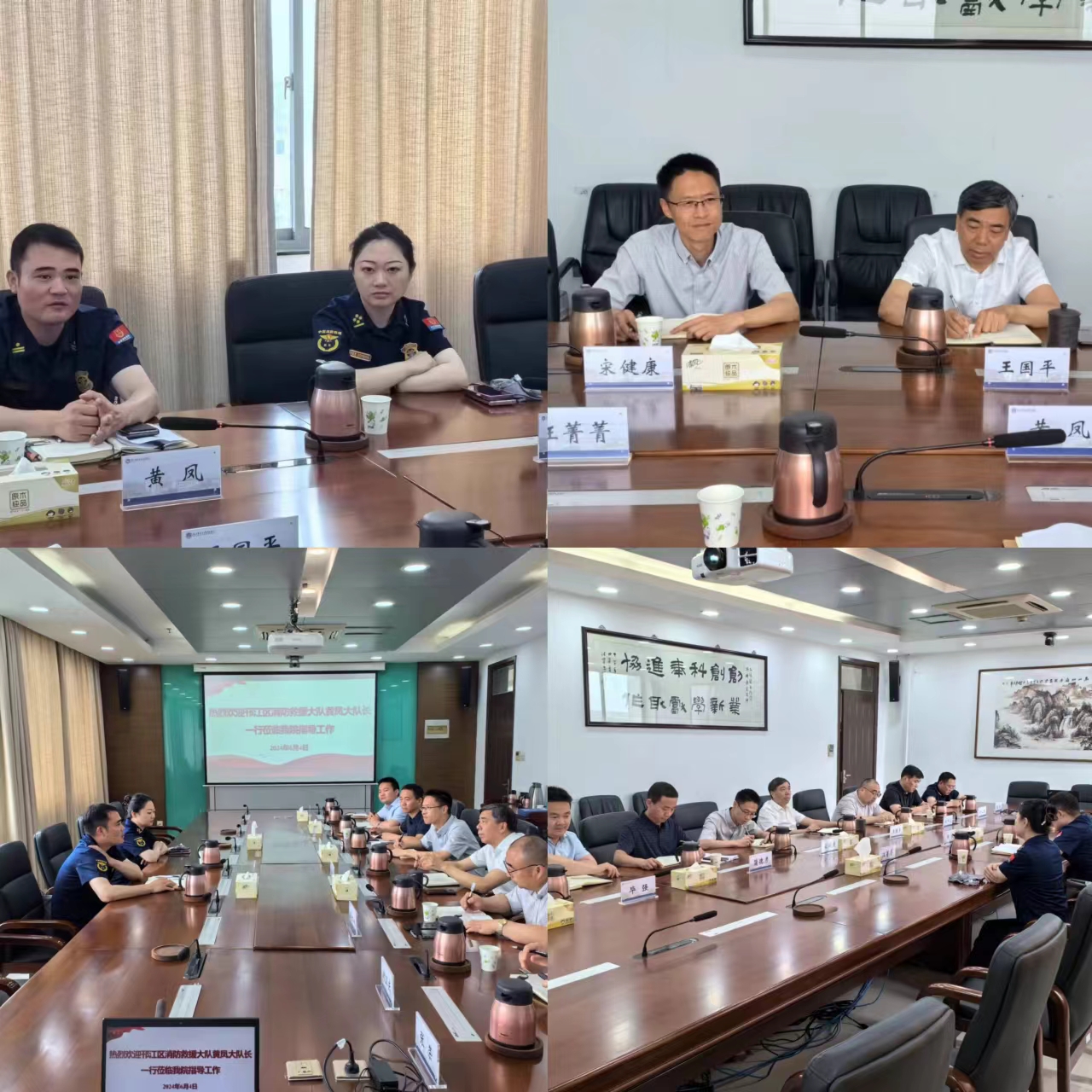 64日下午,扬州市邗江区消防救援大队大队长黄凤、参谋汪菁菁莅临万象城官网,对万象城官网消防安全工作进行指导,院长王国平,纪委书记宋健康,保卫处及相关部门负责人参加座谈交流。
