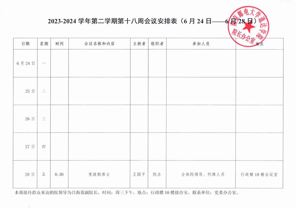 2023-2024学年第二学期第十八周会议安排表