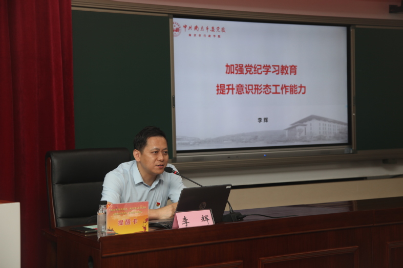 南京市委党校副教授李辉以《习近平总书记关于意识形态工作重要论述》为题,从绷紧意识形态这根弦、党员干部必须坚定正确的意识形态立场和如何加强党纪教育提升意识形态工作能力这三个层面,详细论述了加强意识形态工作的紧迫性和必要性。使学员们深刻认识到高校是意识形态工作的重要阵地,要立足新时代意识形态领域面临的新问题、新挑战,找准工作着力点,提升意识形态教育的实效性。