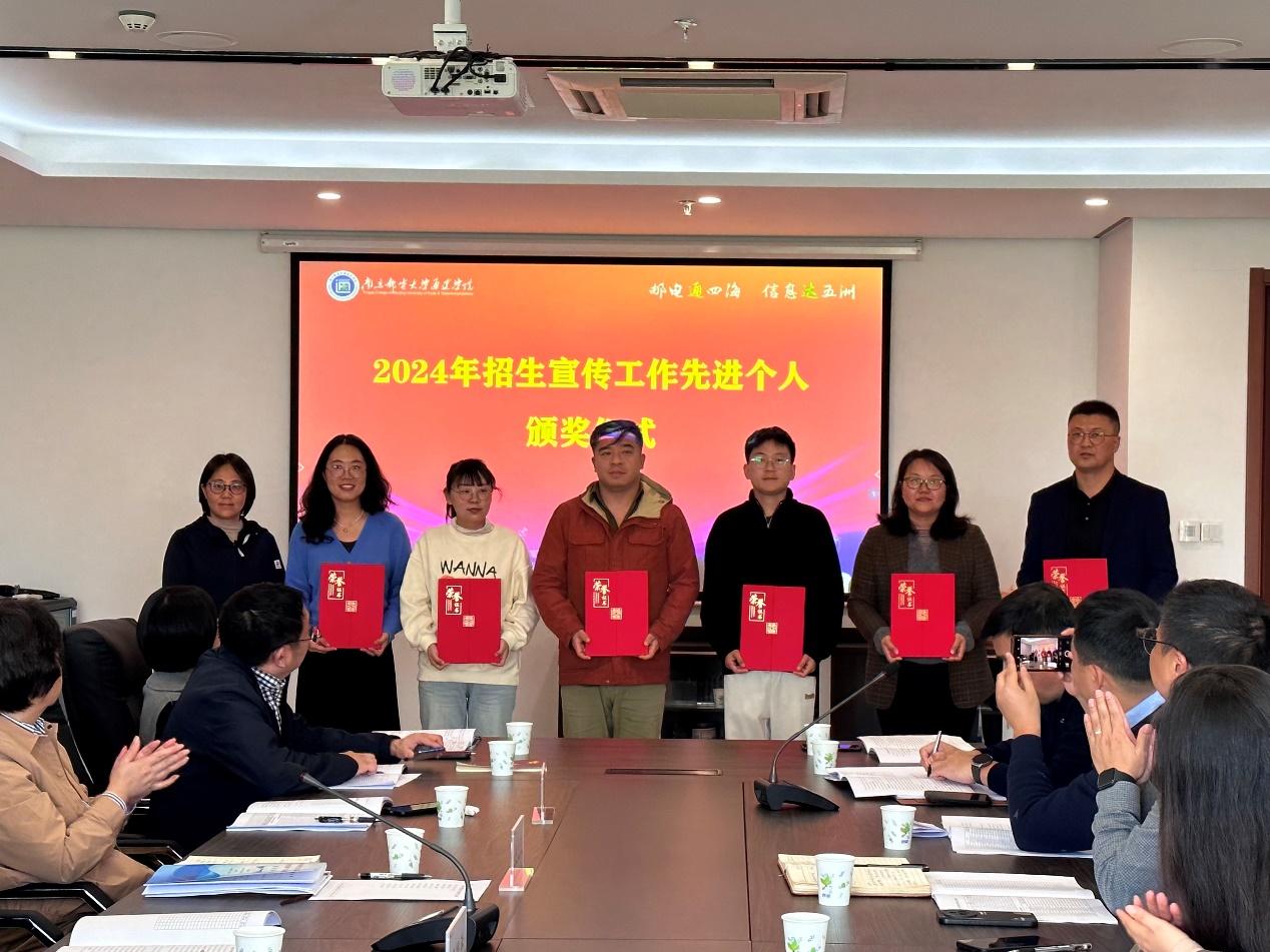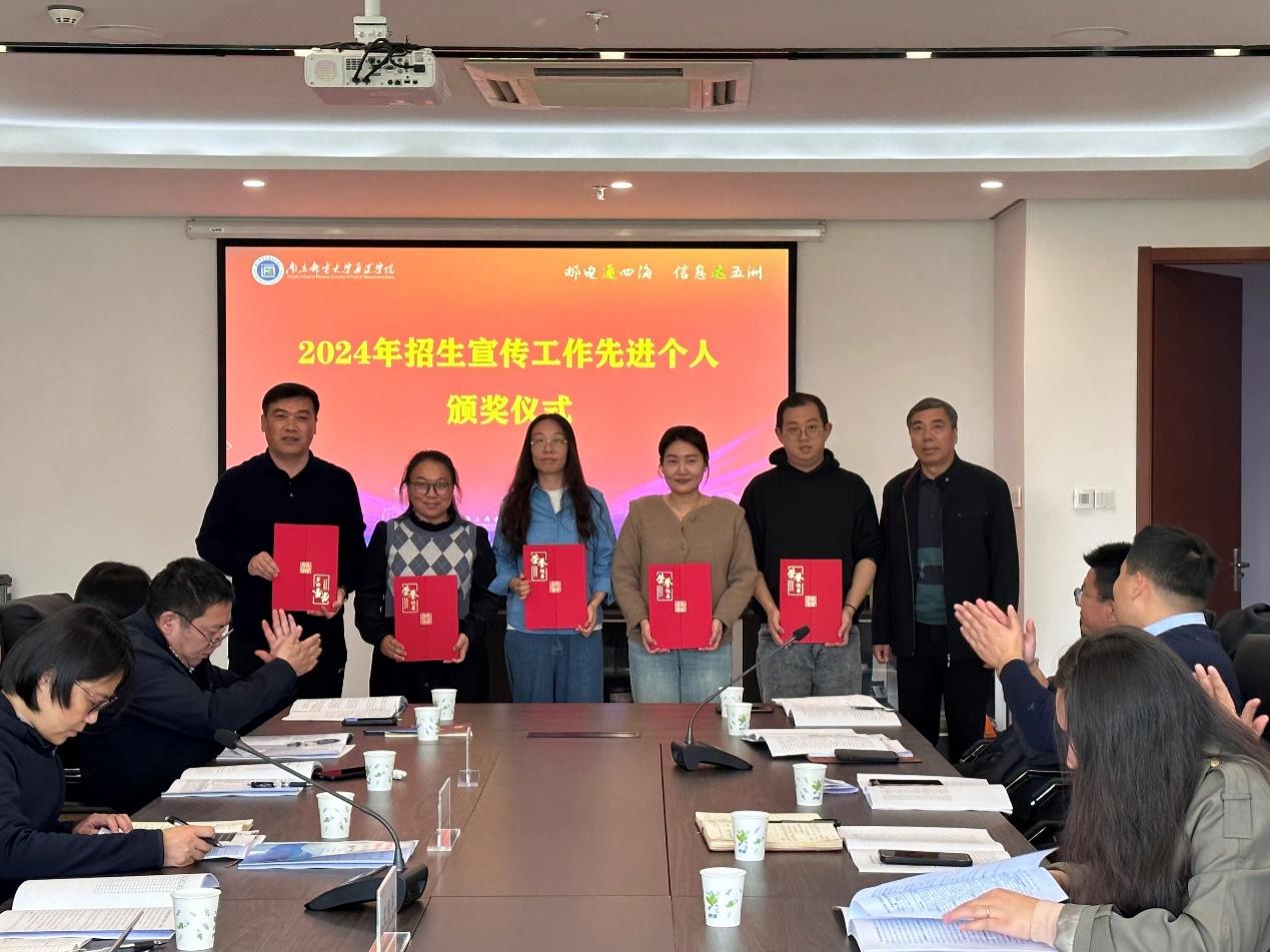 党委书记赵允玉宣读了《关于表彰2024年招生宣传工作先进个人的决定》。院长王国平、党委书记赵允玉为“2024年招生宣传工作先进个人”获奖者颁奖。