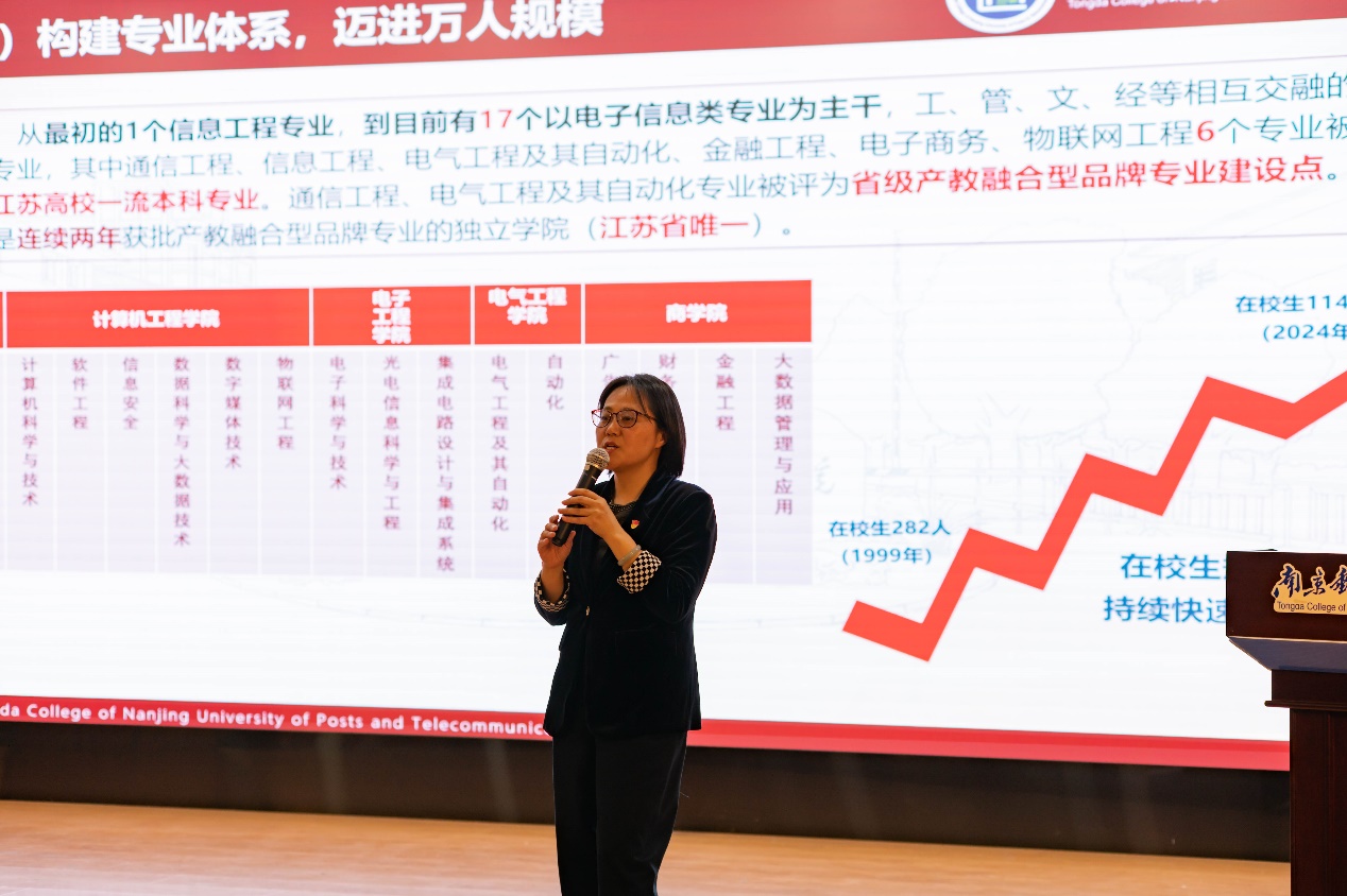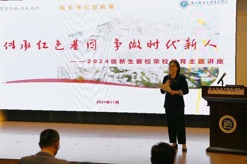 她对2024级同学提出希望,勉励同学们传承南邮红色基因,学习奋斗在各行业的“南邮人”精神,讲好“通达故事”,担负起通达人的时代使命。在新时代新征程上,同学们要“眼中有光”、“脚下有路”、“肩上有责”和“心中有戒”,不断强化自身作为“新时代青年”的使命荣光与通达学子的责任担当,把自身发展积极融入到国家的繁荣发展之中,奋力书写实现中国式现代化的新篇章。