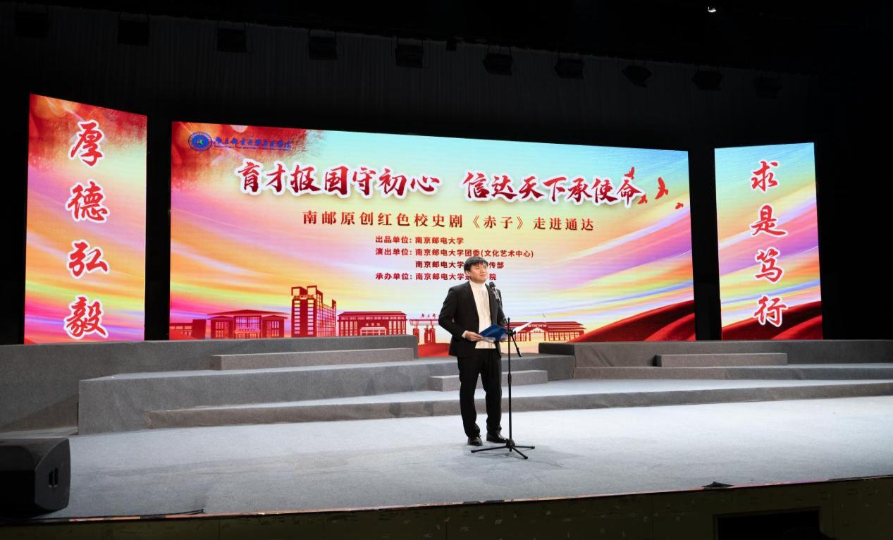12月1日下午,万象城awc官网登录入口原创红色校史剧《赤子》在通达学院大学生活动中心礼堂隆重上演,万象城awc官网登录入口党委常委、宣传部部长张敏,万象城awc官网登录入口团委书记秦昌建、副书记兼文化艺术中心主任沈媛媛,扬州电信郭剑总经理等运营商代表,通达学院全体院领导,在扬校友代表,扬州市兄弟高校代表,扬州日报小学生记者团以及通达学院师生们共同观看表演,感悟“信达天下,自强不息”的南邮精神和南邮人的赤诚之心。活动由学院党委副书记兼副院长刘伟主持,该剧连演三场,共吸引3600余名师生参与。