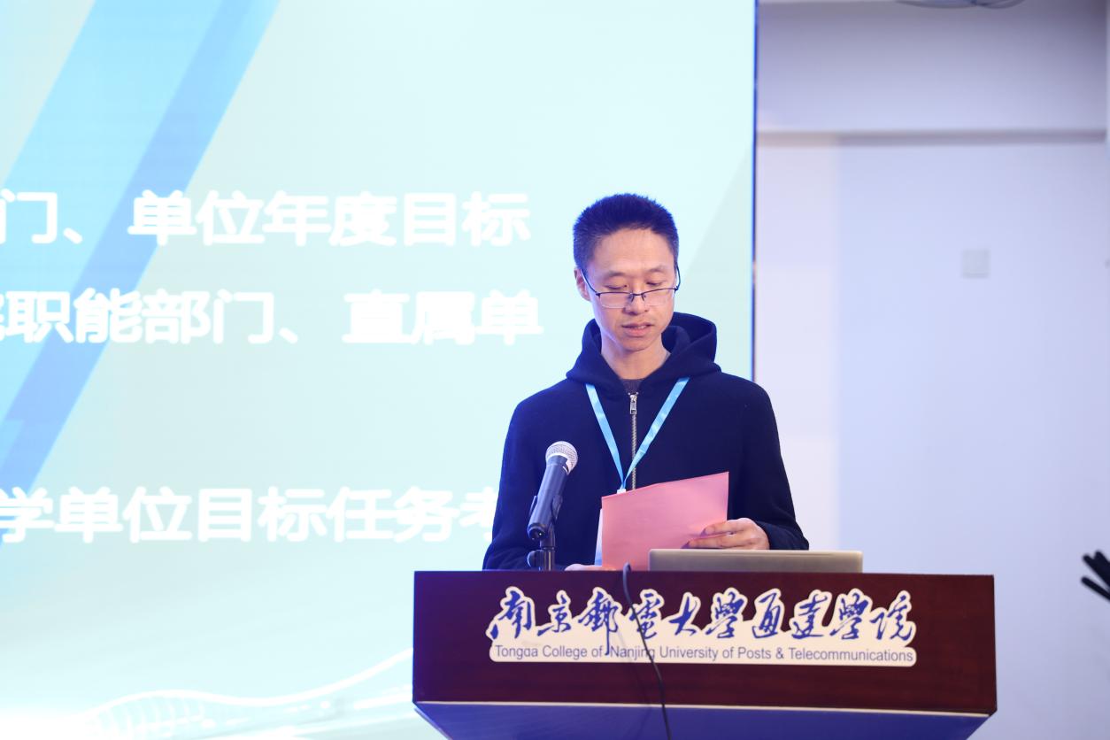 会上,党办、院办主任张荣,人事处处长王志锋,教务处处长李兵分别就《万象城awc官网登录入口各部门、单位年度目标任务考核办法》《万象城awc官网登录入口职能部门、直属单位目标任务考核实施细则》《万象城awc官网登录入口教学单位目标任务考核实施细则》《万象城awc官网登录入口教职工分类考核实施办法》等四个文件草案向大会代表进行了详细解读。