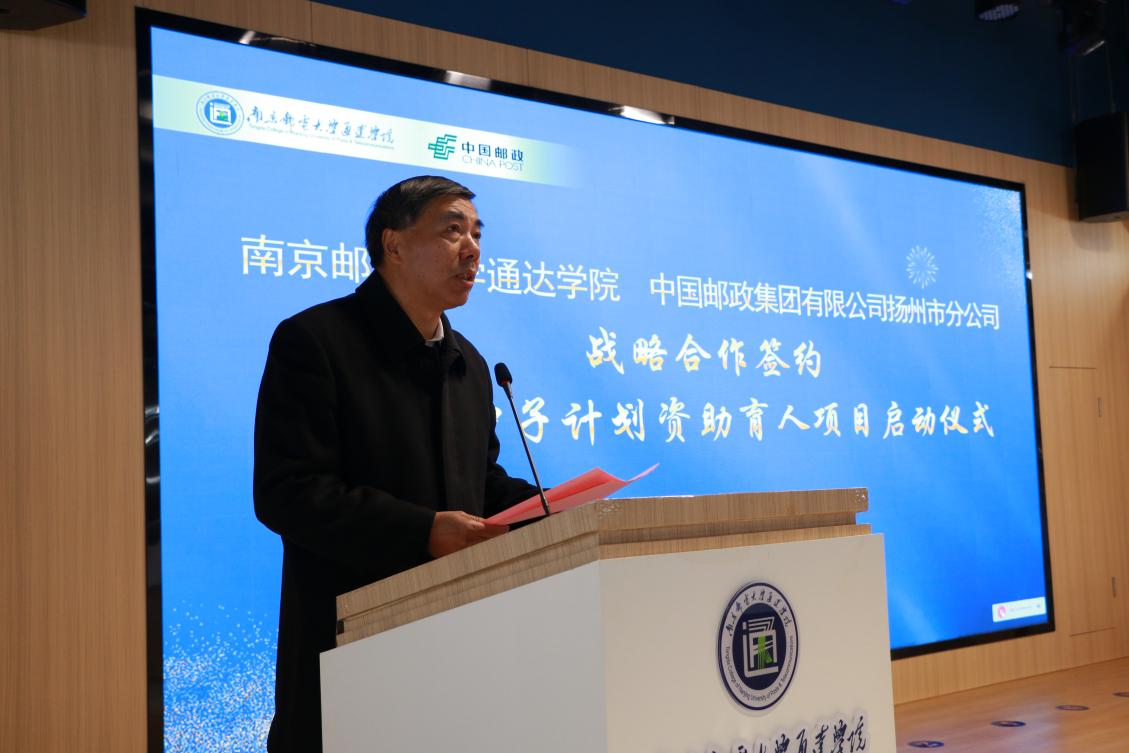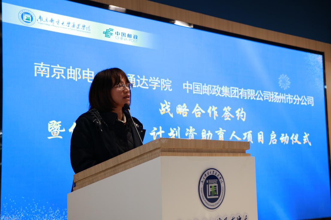 中国邮政扬州分公司党委副书记、副总经理郭晓苗在活动致辞中表示,中国邮政扬州分公司将依托中国邮政完善的产品体系,为学院师生提供更加优质的多元化服务,为家庭经济困难学生提供更好的人才培养和职业体验平台,助力“种子”学生成长成才。