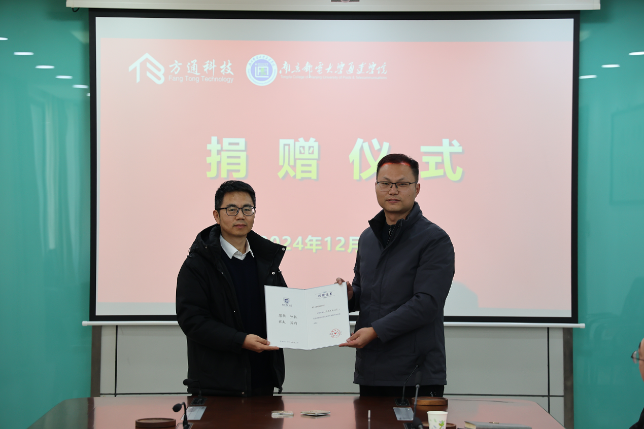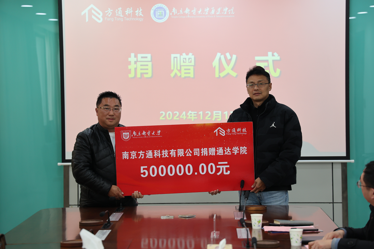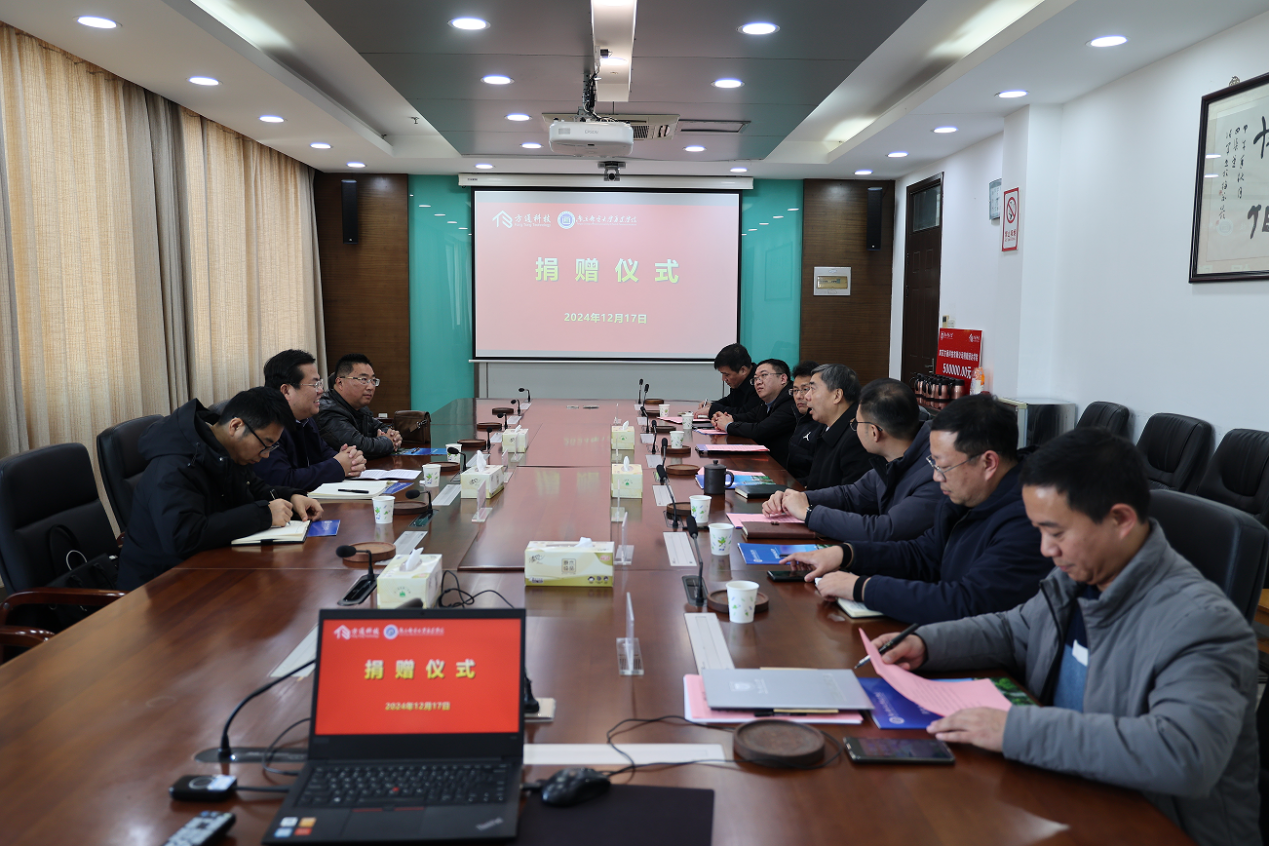 12月17日下午,万象城官网在行政楼10楼会议室举行南京方通科技有限公司捐赠仪式。南京方通科技有限公司董事长、总经理张建军,副总经理吴宁,销售经理黄鸿飞,万象城awc官网登录入口教育发展基金会办公室副主任王楷,学院院长王国平、副院长张伟出席捐赠仪式。捐赠仪式由后勤管理处处长蒲德彦主持。