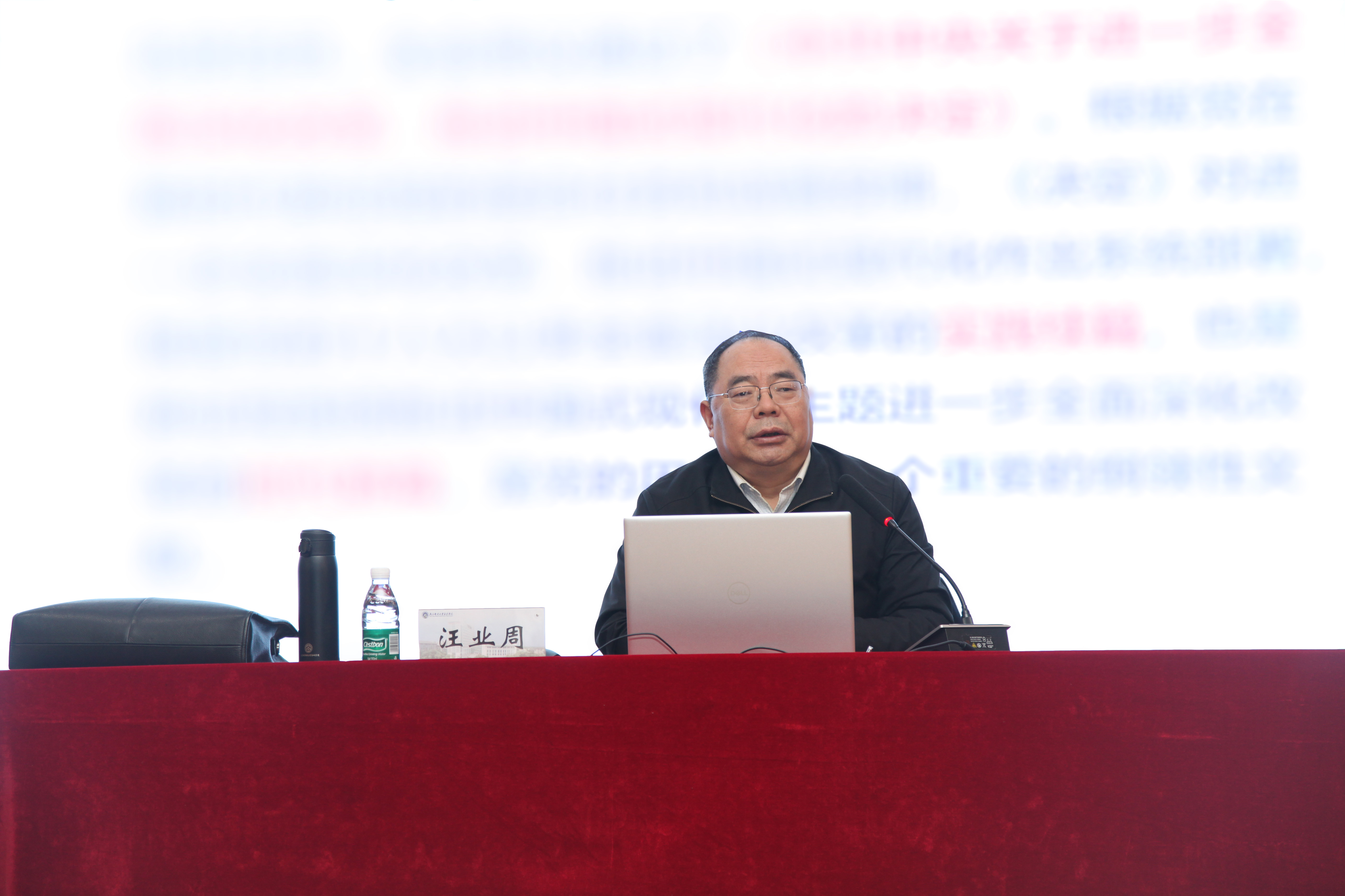 培训开篇,万象城awc官网登录入口马克思主义学院汪业周教授作《绘就进一步全面深化改革新蓝图——党的二十届三中全会精神宣讲》专题讲座。汪业周教授从深刻认识党的二十届三中全会的重大意义和历史影响、准确理解《决定》进一步全面深化改革的重大举措和习近平文化思想:对文化体制机制改革的理论指导三个方面,深入剖析了全会精神的核心要义与时代价值,使参训干部明确在教育领域如何贯彻落实全会精神,将国家发展战略与学院实际工作紧密结合,增强政治责任感与历史使命感。