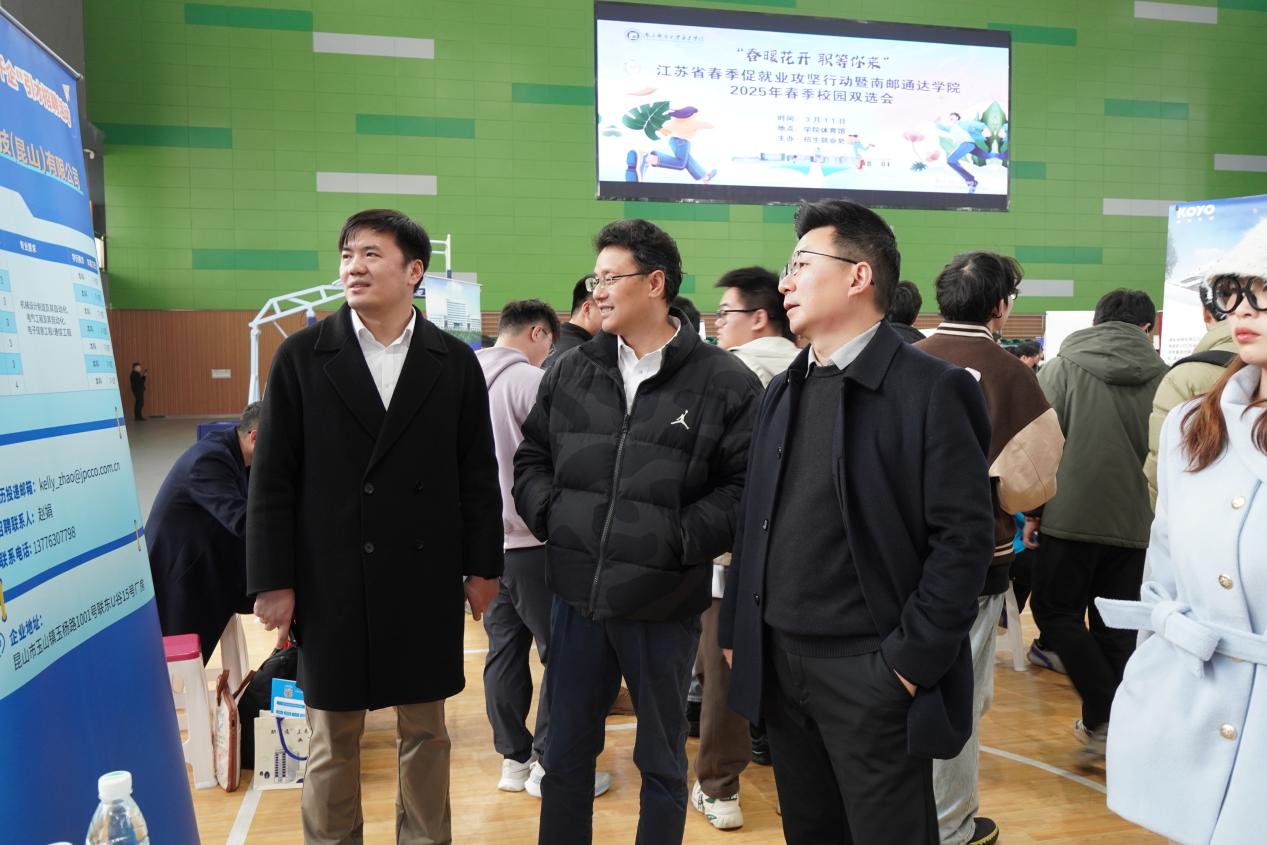 3月11日下午,万象城官网在体育馆举办江苏省2025年春季促就业攻坚行动暨万象城awc官网登录入口“春暖花开 职等你来”春季校园双选会。学院院长王国平、副院长吕海蓉、副院长张伟、纪委书记宋健康和党委副书记兼副院长刘伟等莅临招聘会现场指导工作。各二级学院负责人,学工处、招就处负责人及相关人员,2025届全体毕业班辅导员全程参与本次招聘会,现场与企业、学生沟通交流,共同促进双向选择。